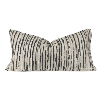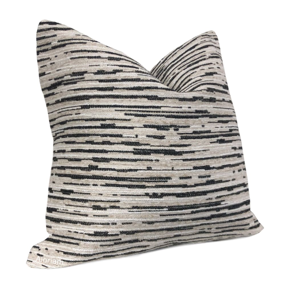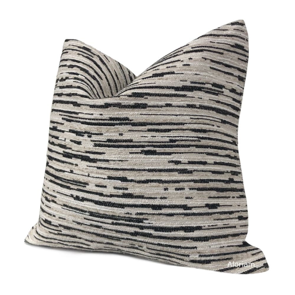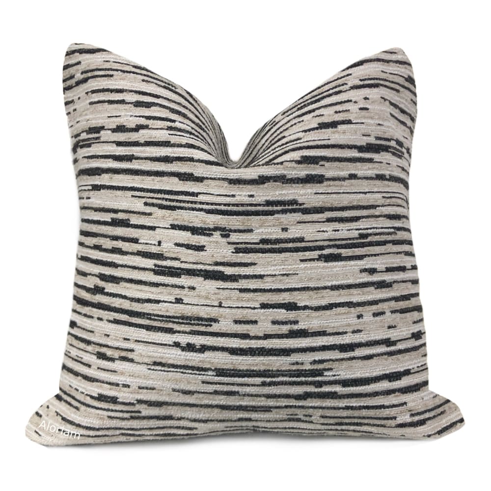 The Ashton pillow cover features a striated texture weave in beige and dark brown-black chenille.