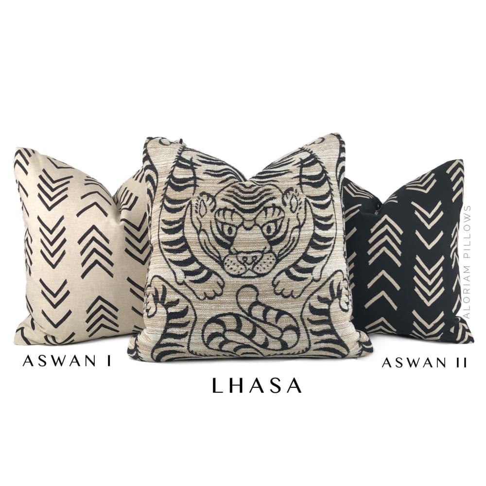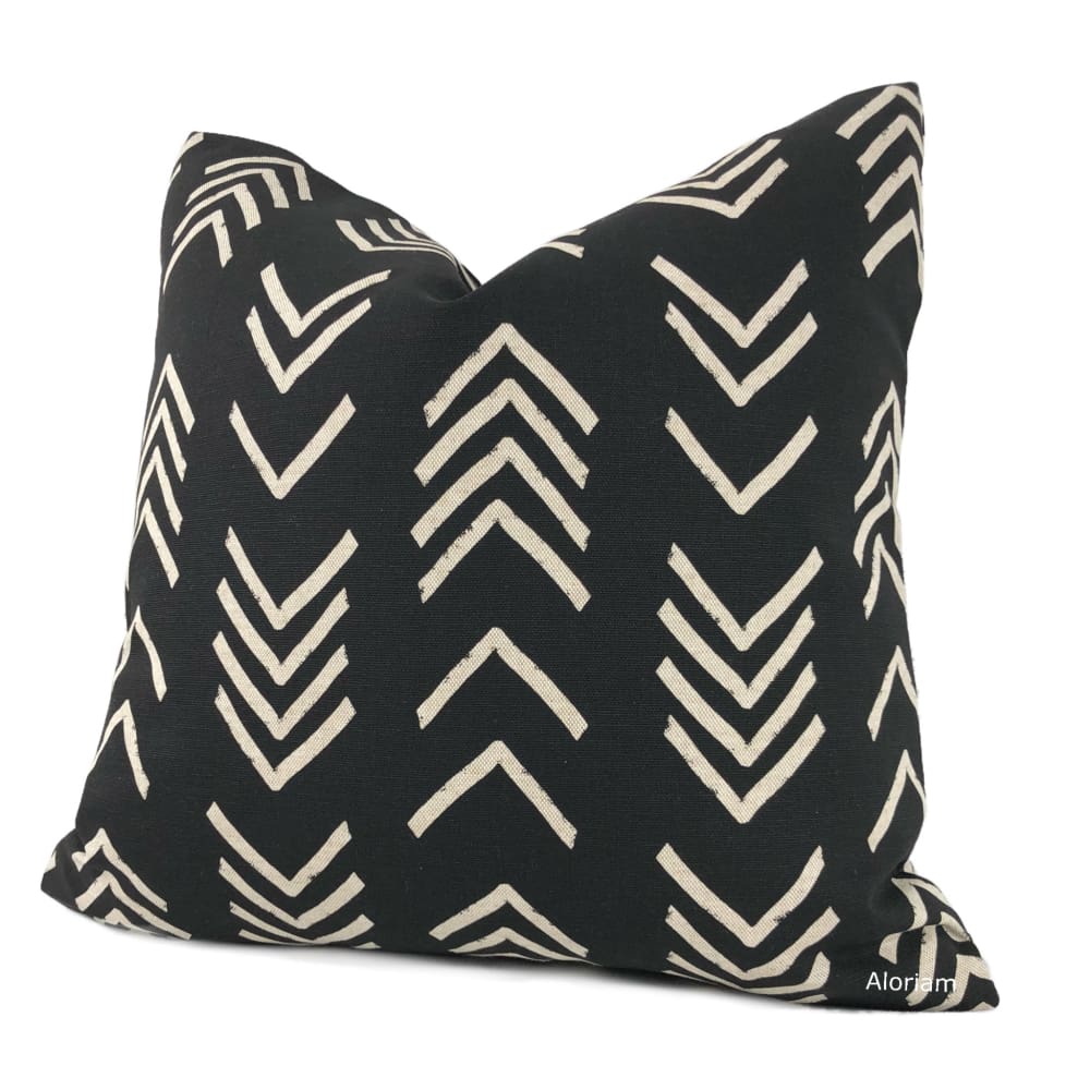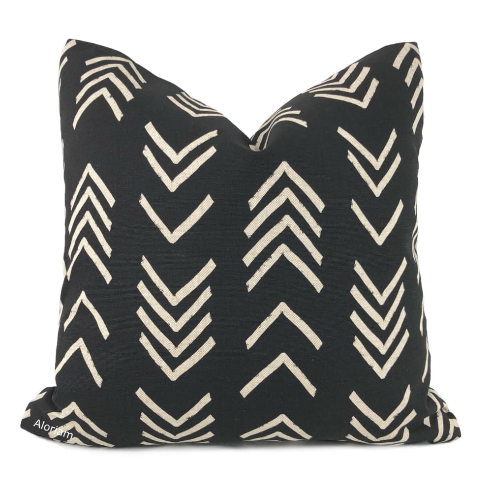 Aswan II Black Beige Tribal Arrow Print Pillow Cover