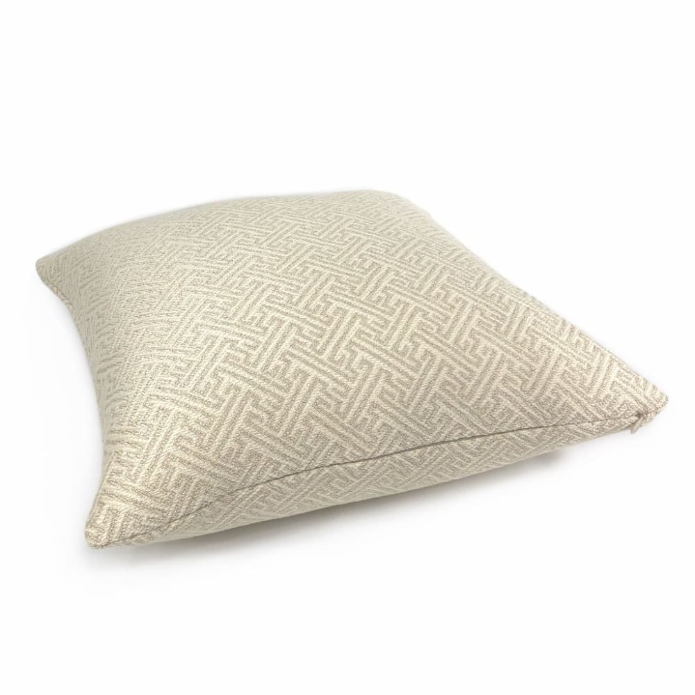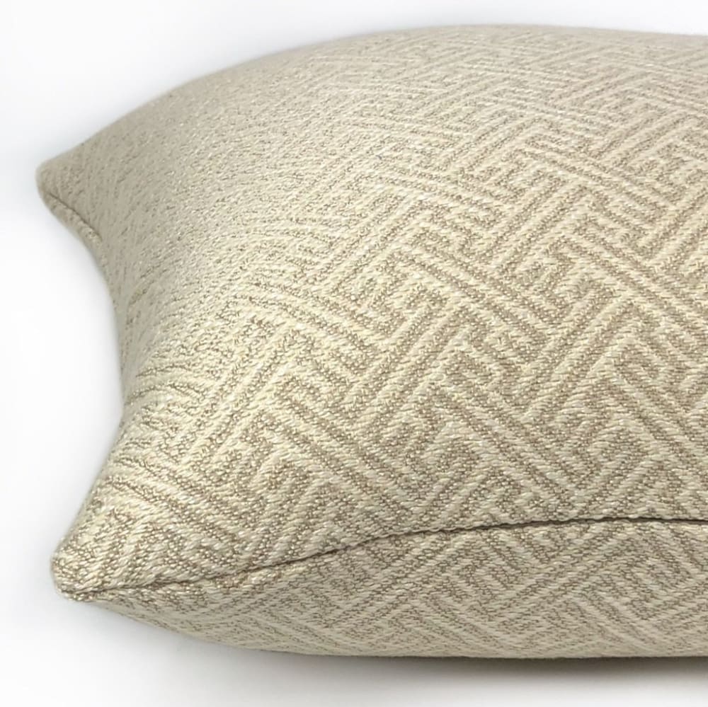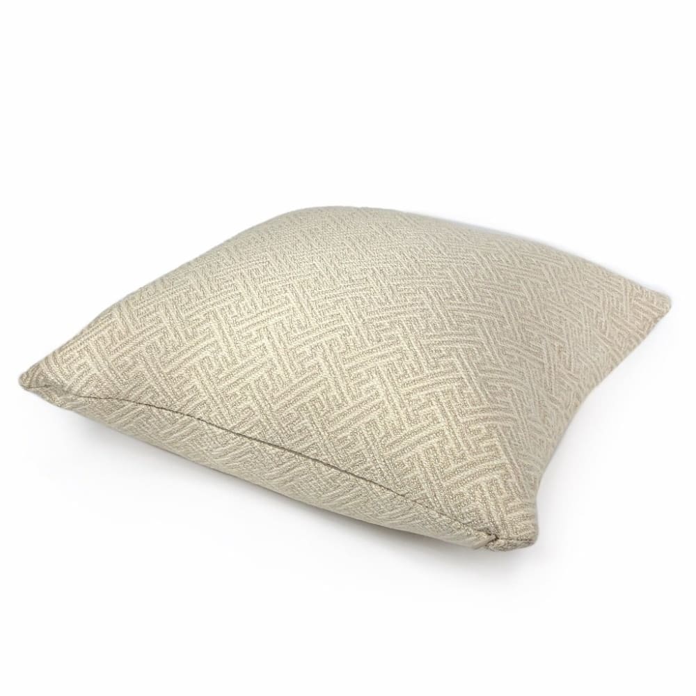 Atlas is a tone on tone cream and beige pillow cover featuring a Greek key geometric pattern. This pillow design is classic and timeless, allowing you to easily accessorize it with floral, abstract, animal print and other patterns!