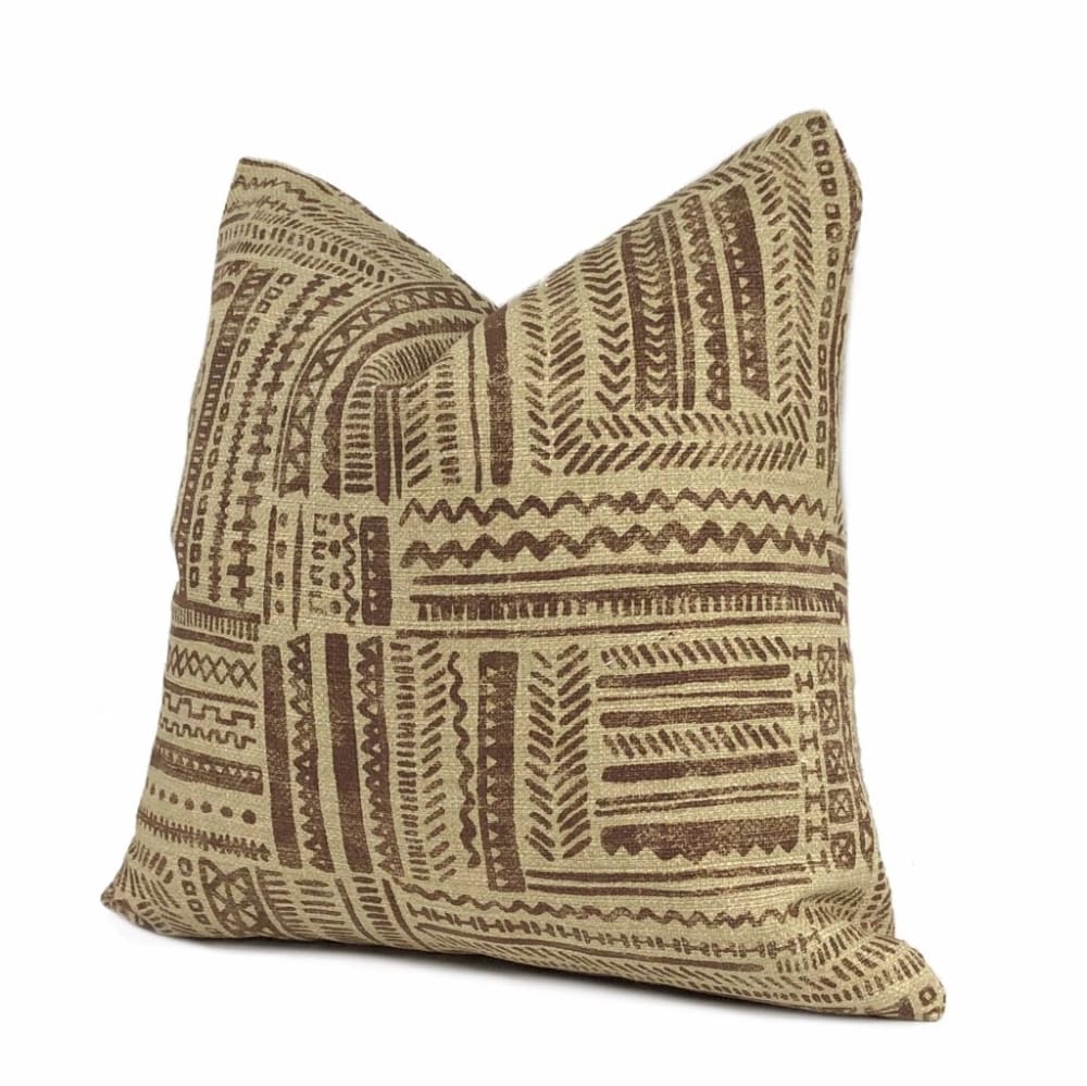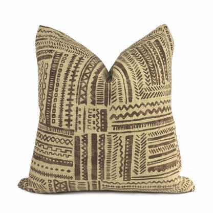 Banba African Ethnic Brown Tan Mudcloth Print Pillow Cover