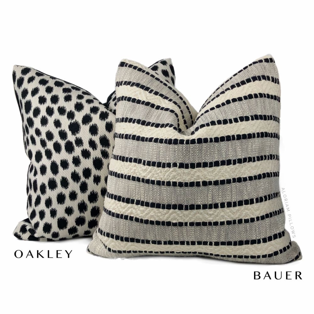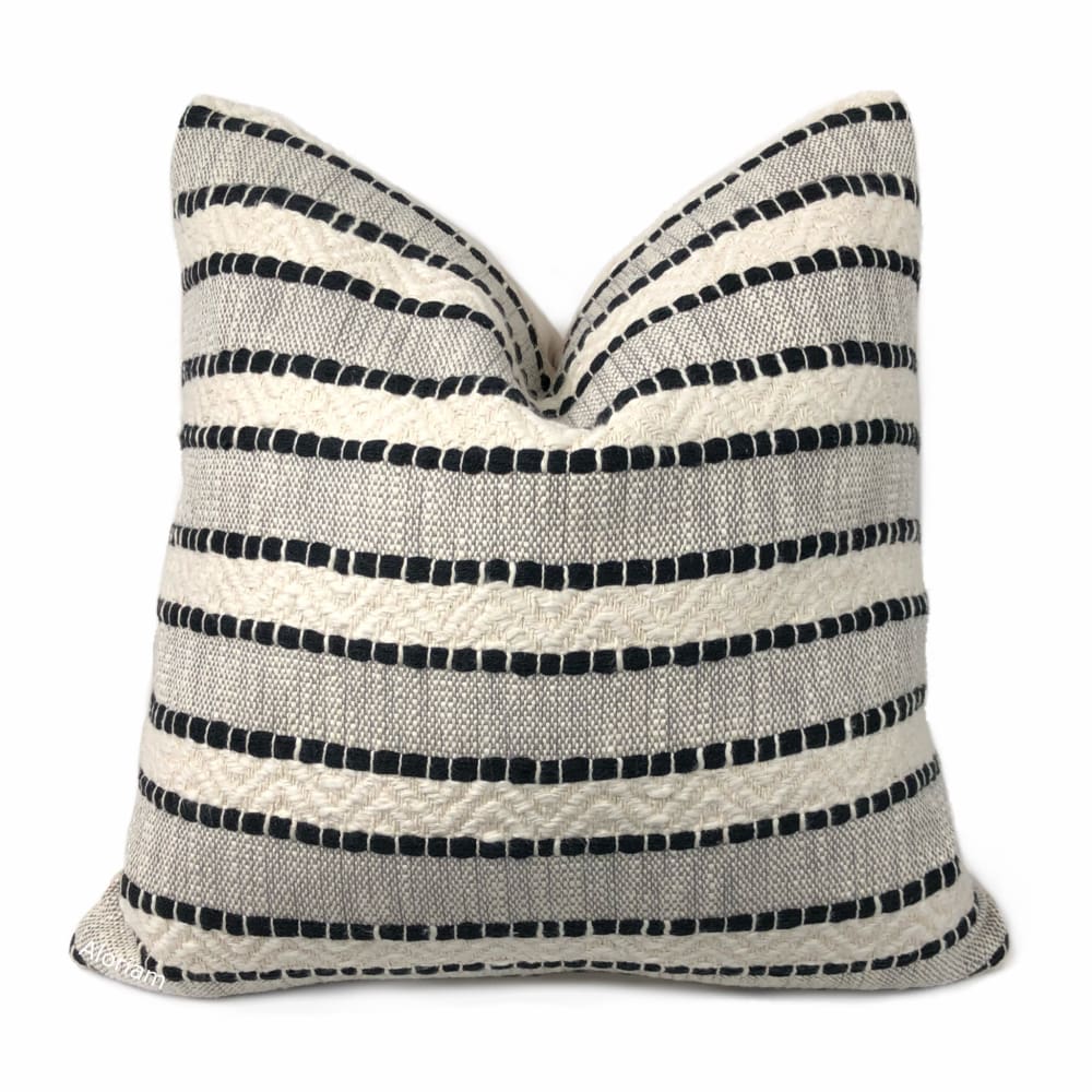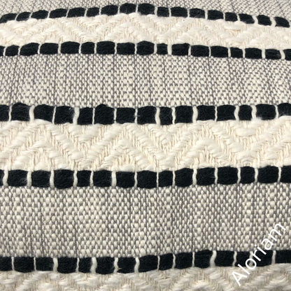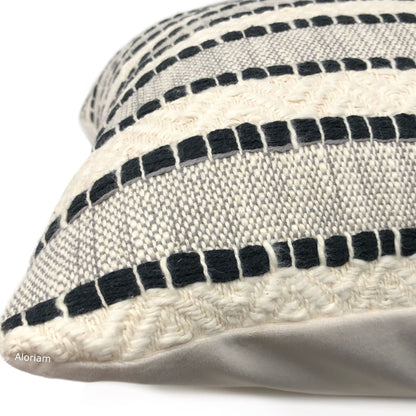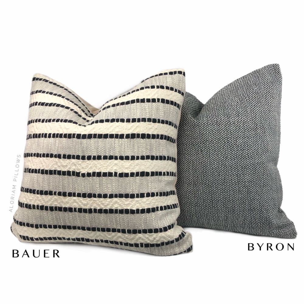Bauer is a textured striped pillow cover woven in black and rich ivory.