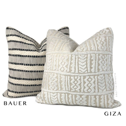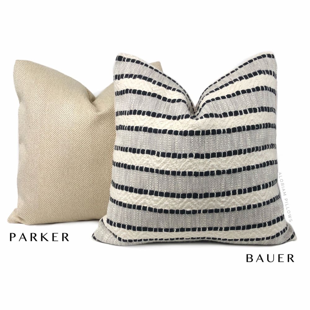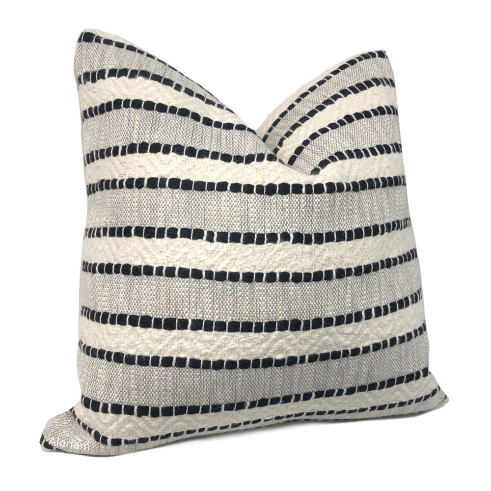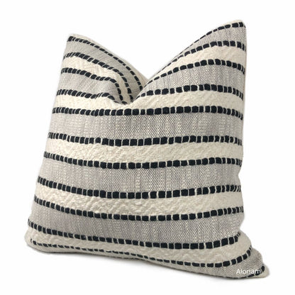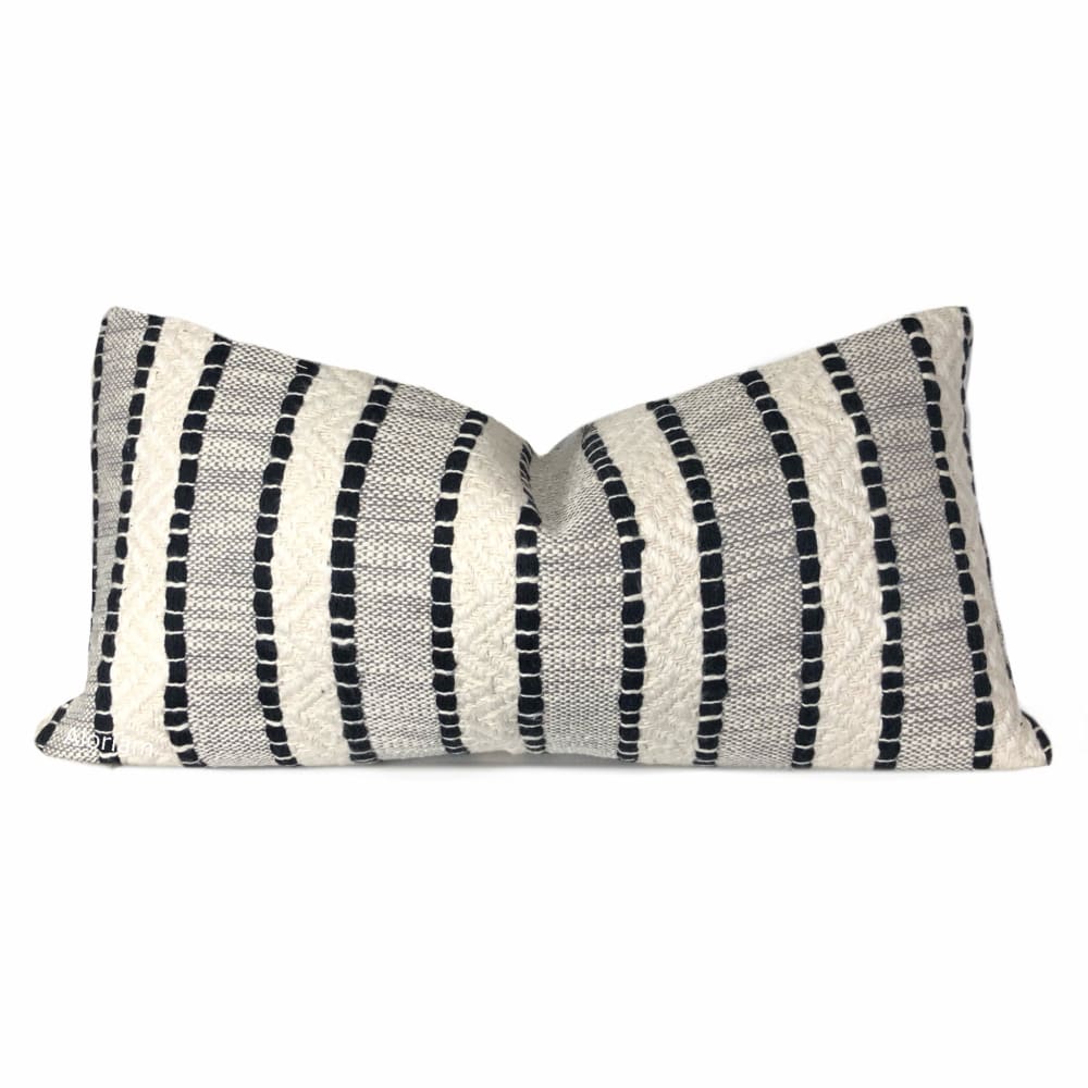 Bauer is a textured striped pillow cover woven in black and rich ivory.