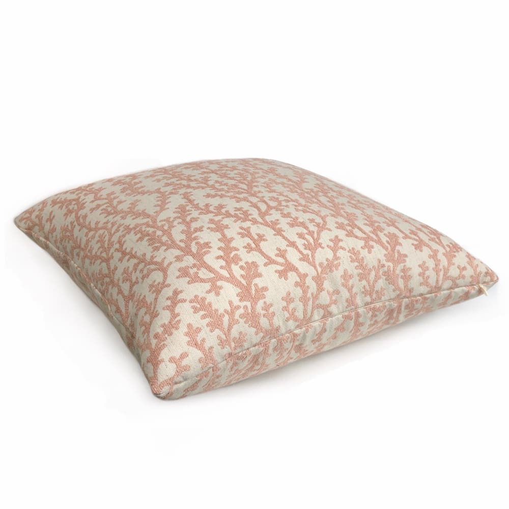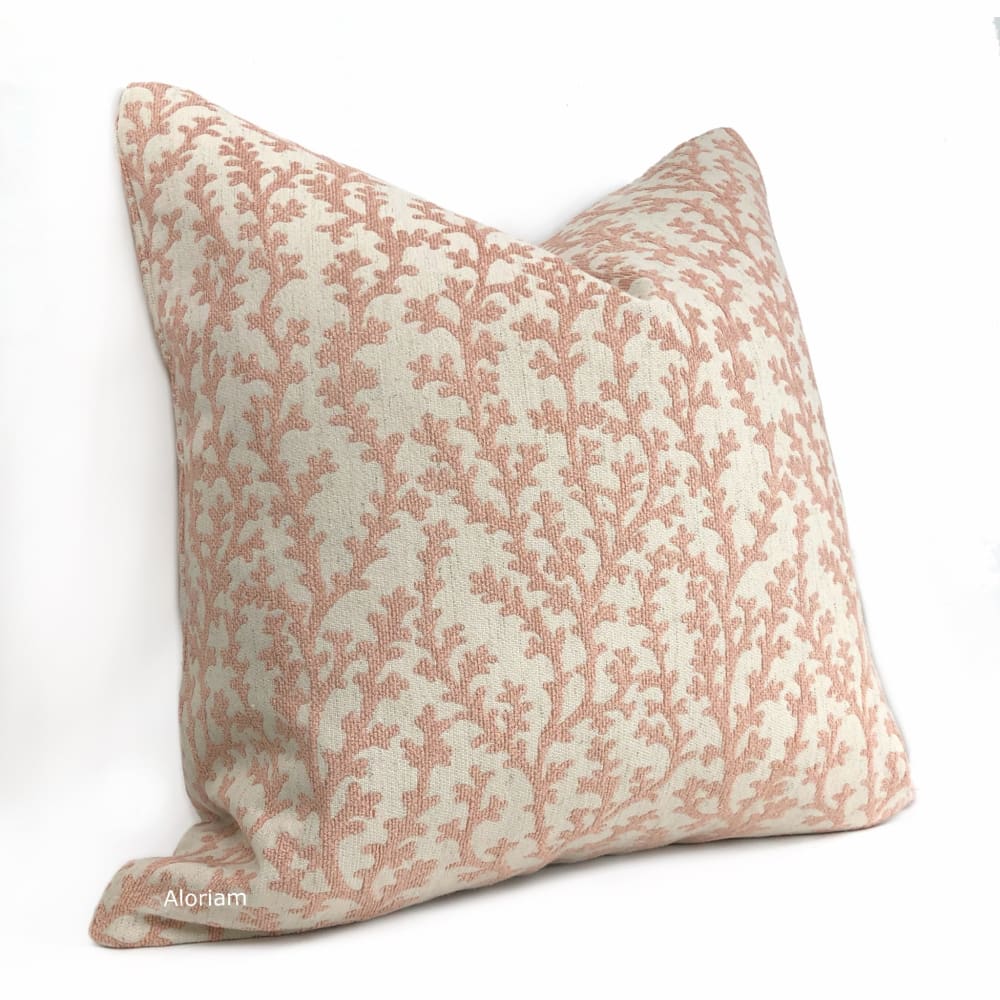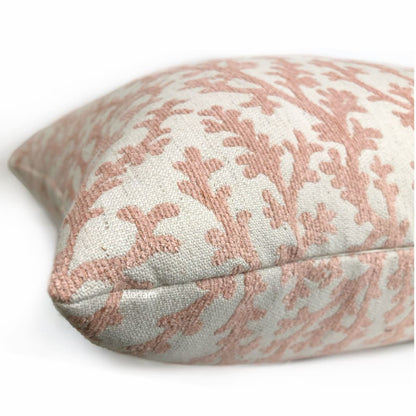 Beatrix is an elegant pillow cover with a floral vine design woven in blush pink on a light natural background. Perfectly beautiful for both traditional and contemporary interiors.