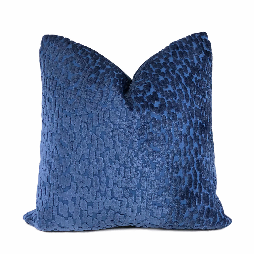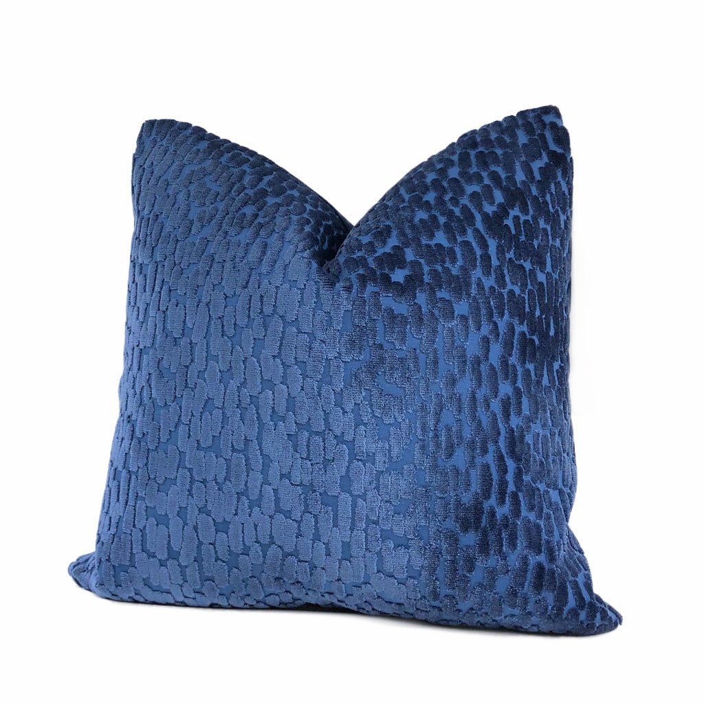 Bellini Large Blue Cut Velvet Dots Pillow Cover