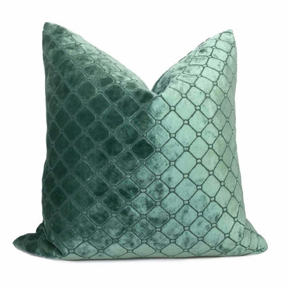 (CLEARANCE) Berel Green Diamond Tile Velvet Pillow Cover