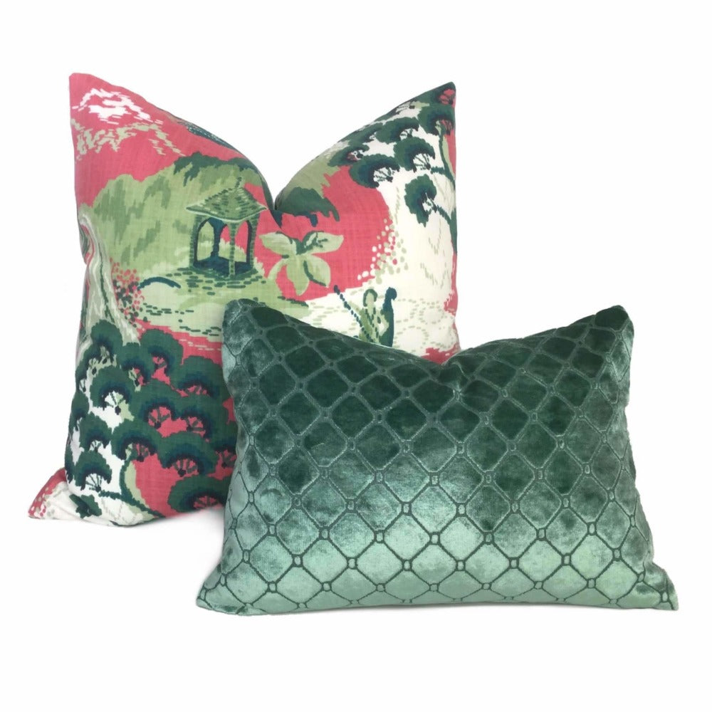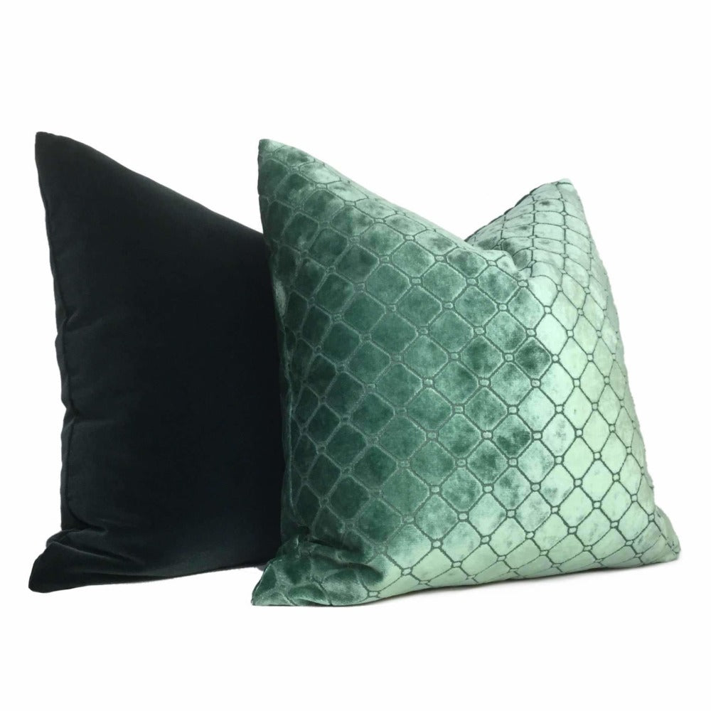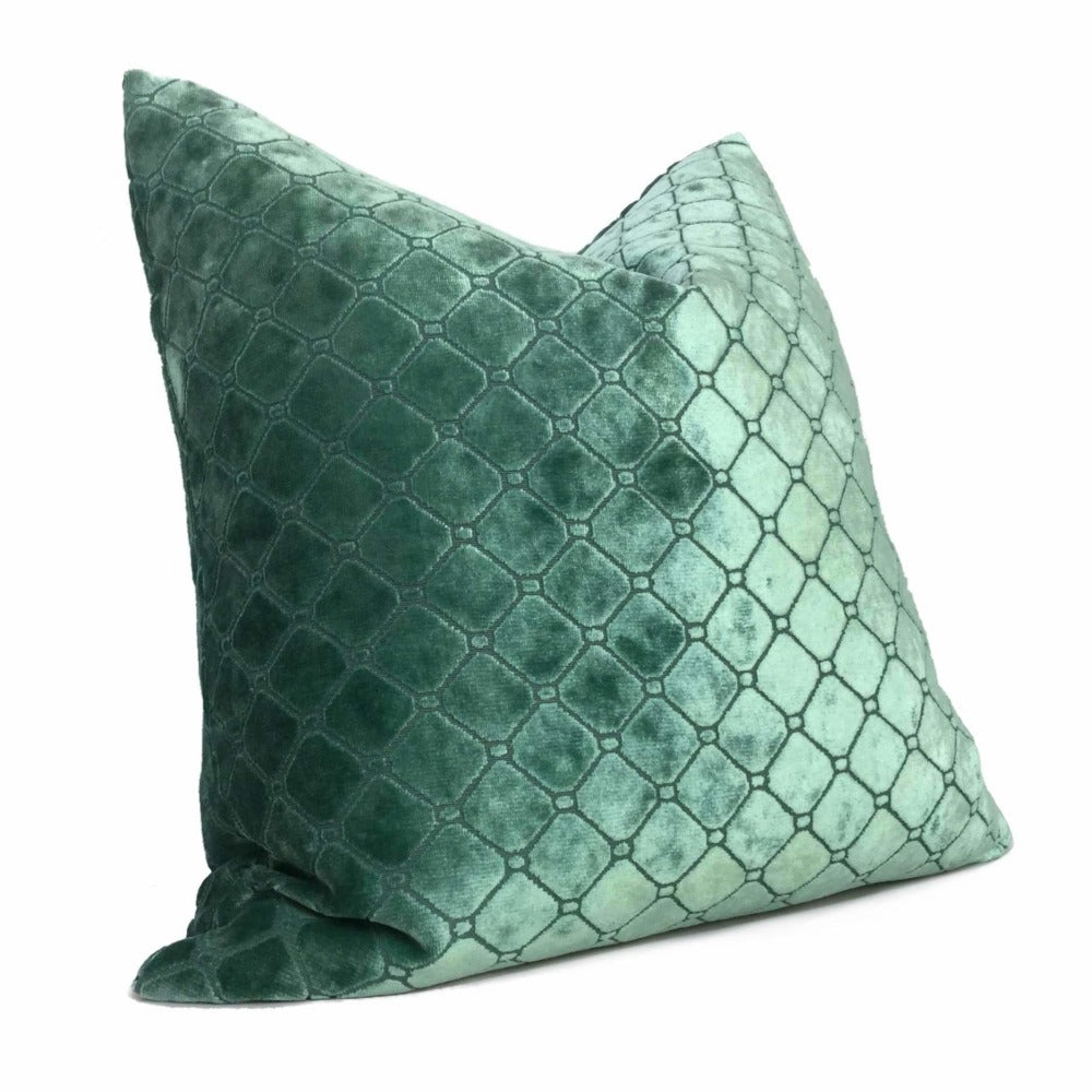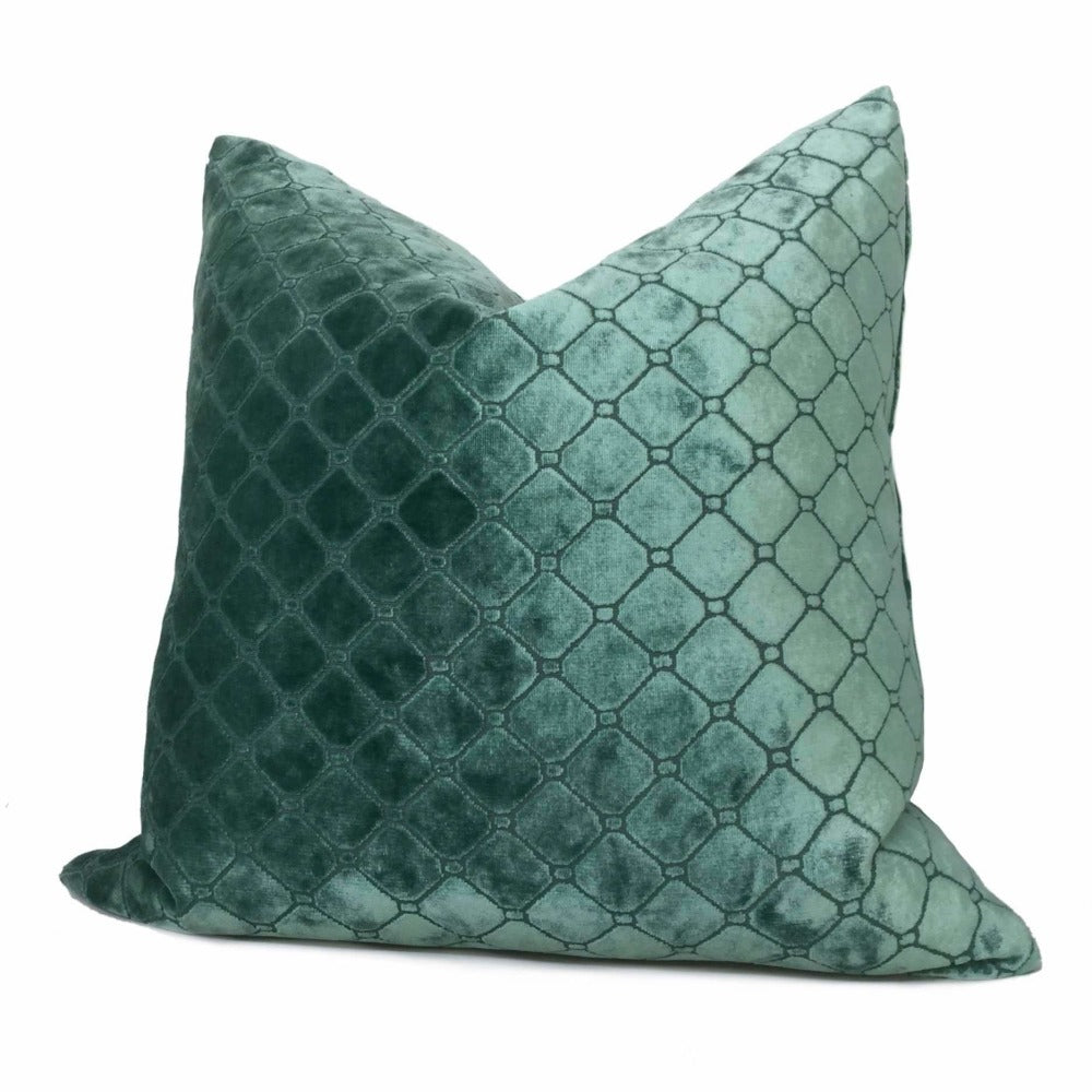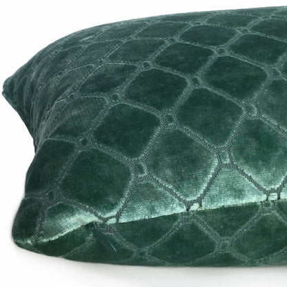 Almost sold out! This berel green velvet pillow cover features a diamond tile pattern that is a great complement to many other designs in our shop! Photographed on 20x20 and 14x20 inserts.