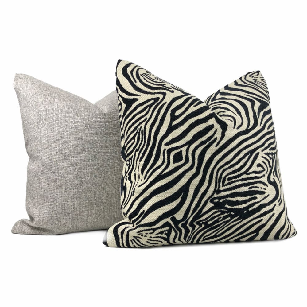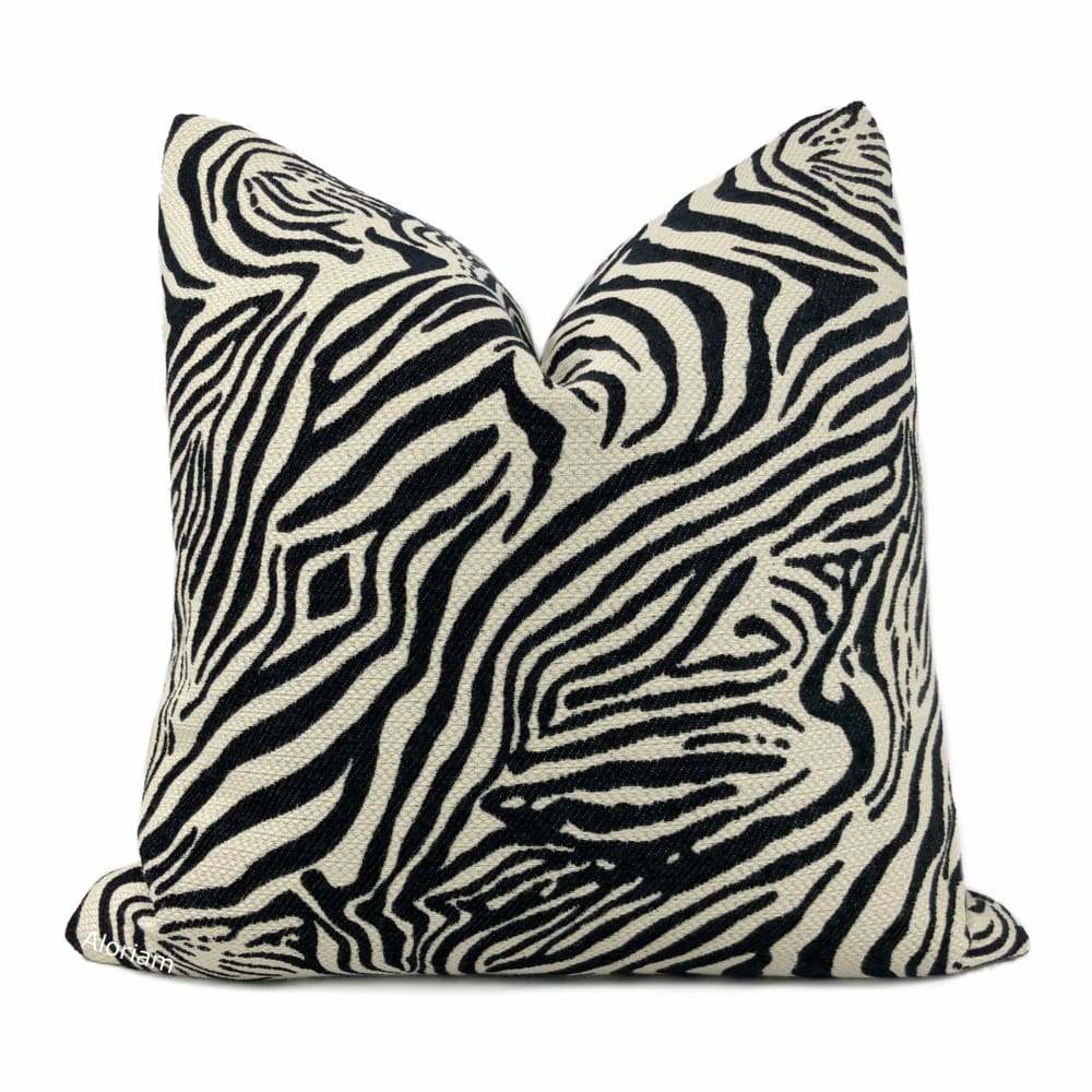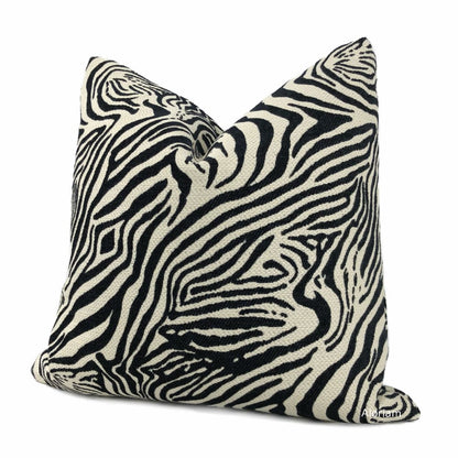 (CLEARANCE) Okapi Black Cream Zebra Animal Stripe Chenille Pillow Cover