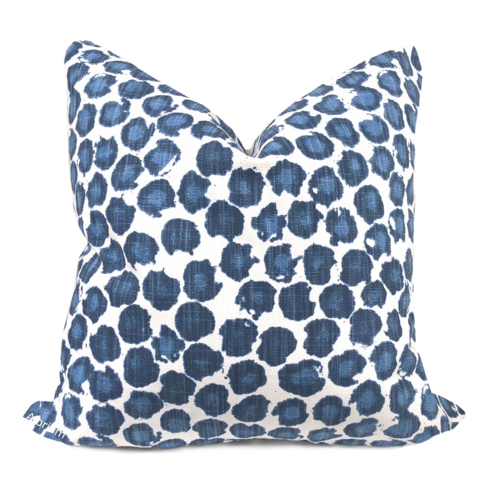 The Blair pillow cover features a modern dotted design printed in blue on a white background. This fresh and playful dots pattern is perfect for contemporary interiors.