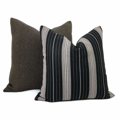 (CLEARANCE) Bond Street Black Gray Taupe Pinstripe Pillow Cover