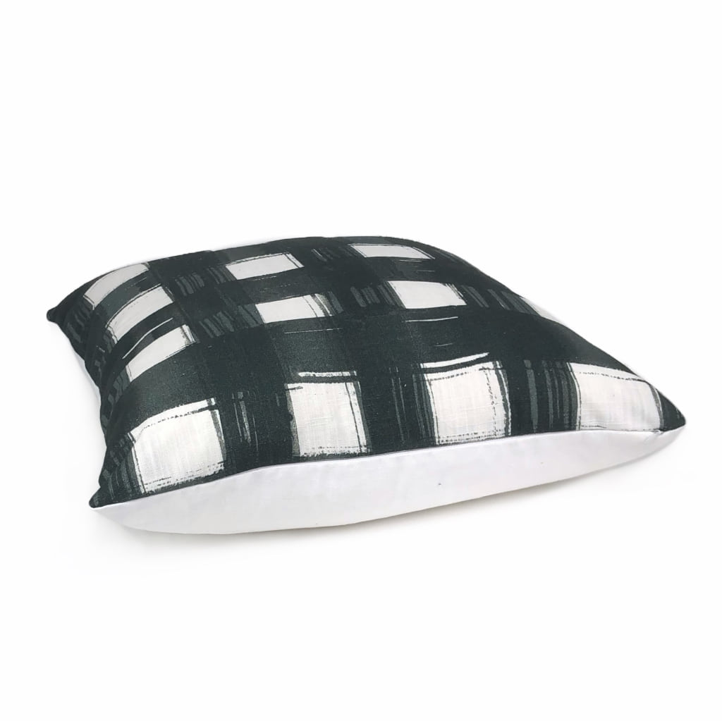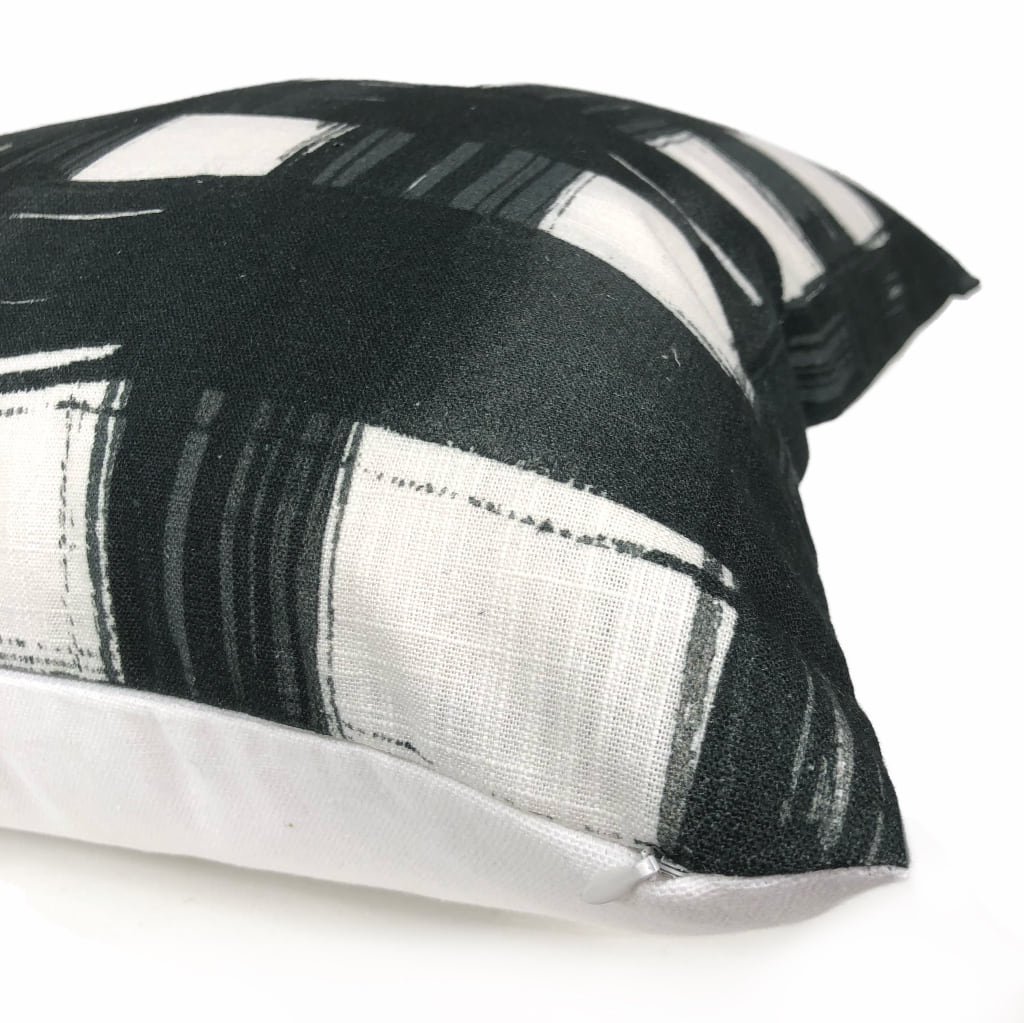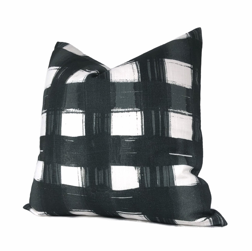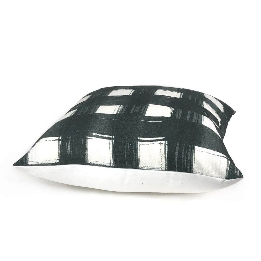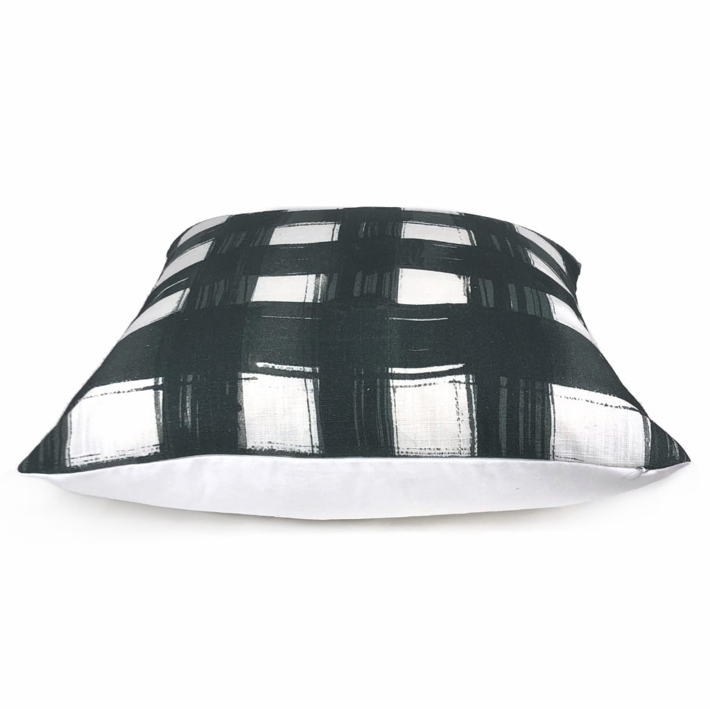 Combining soft black and white, the Brentwood pillow cover features plaid checks printed in a loose hand drawn style. Casual yet chic, the Brentwood pillow mixes with a large number of other designs.