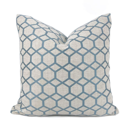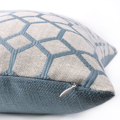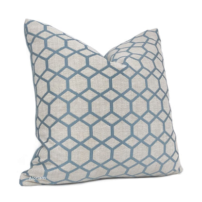 Brooke Blue Geometric Interlocked Hexagons Pillow Cover (Fabric by the Yard available)