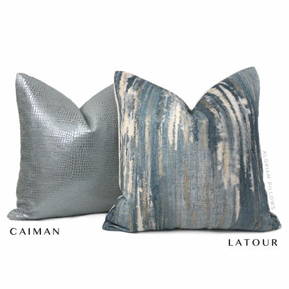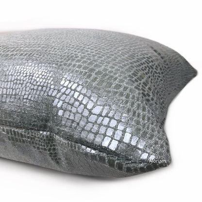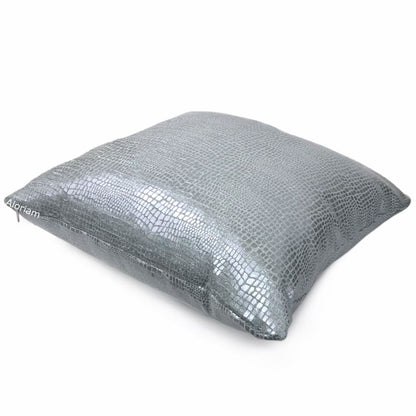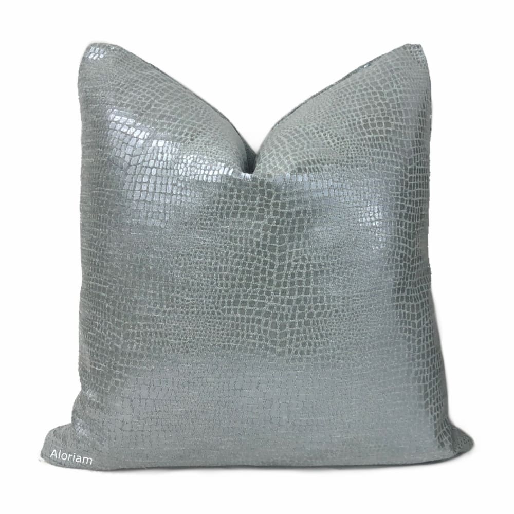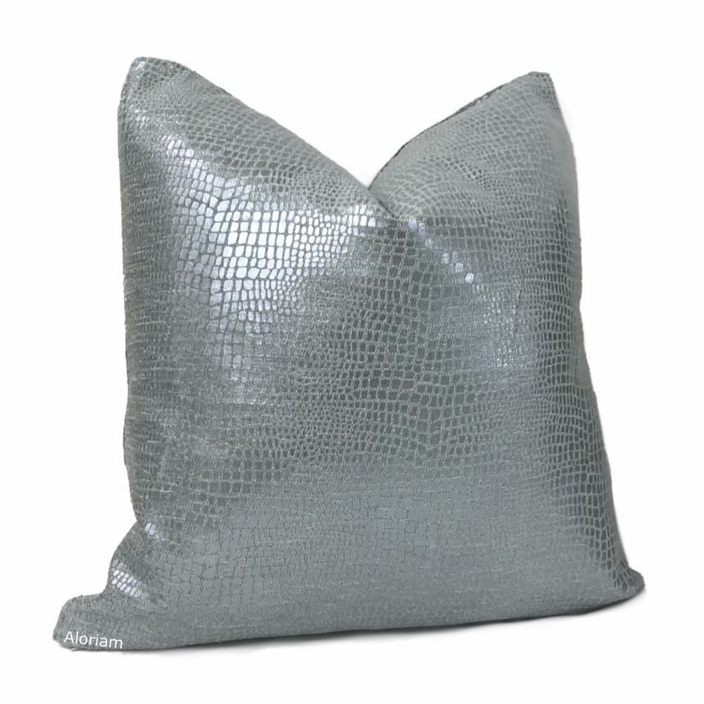 Caiman Silver Blue Metallic Faux Crocodile Skin Pillow Cover