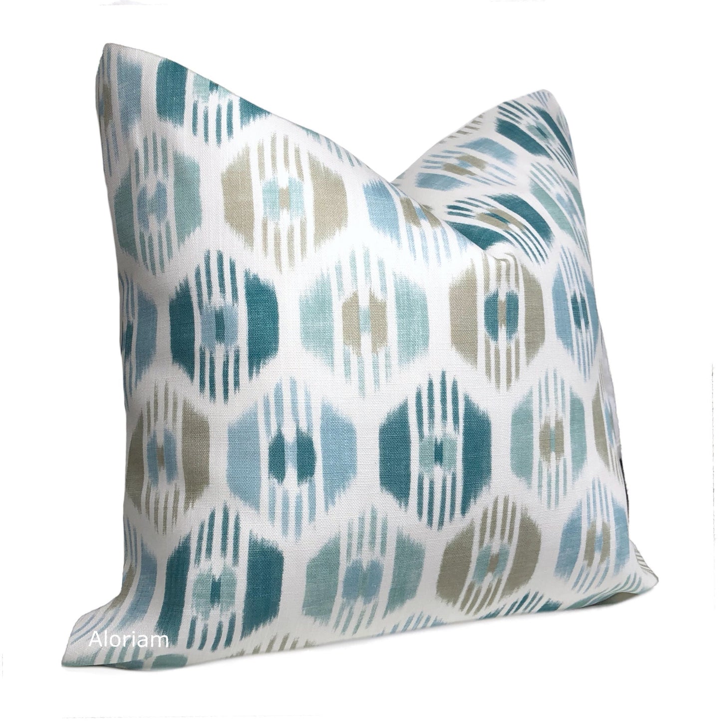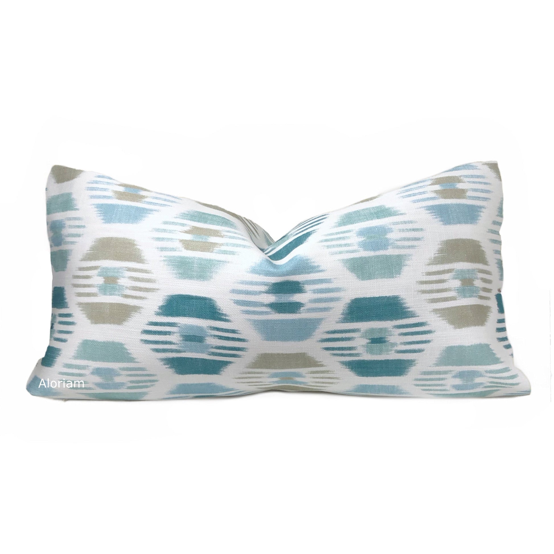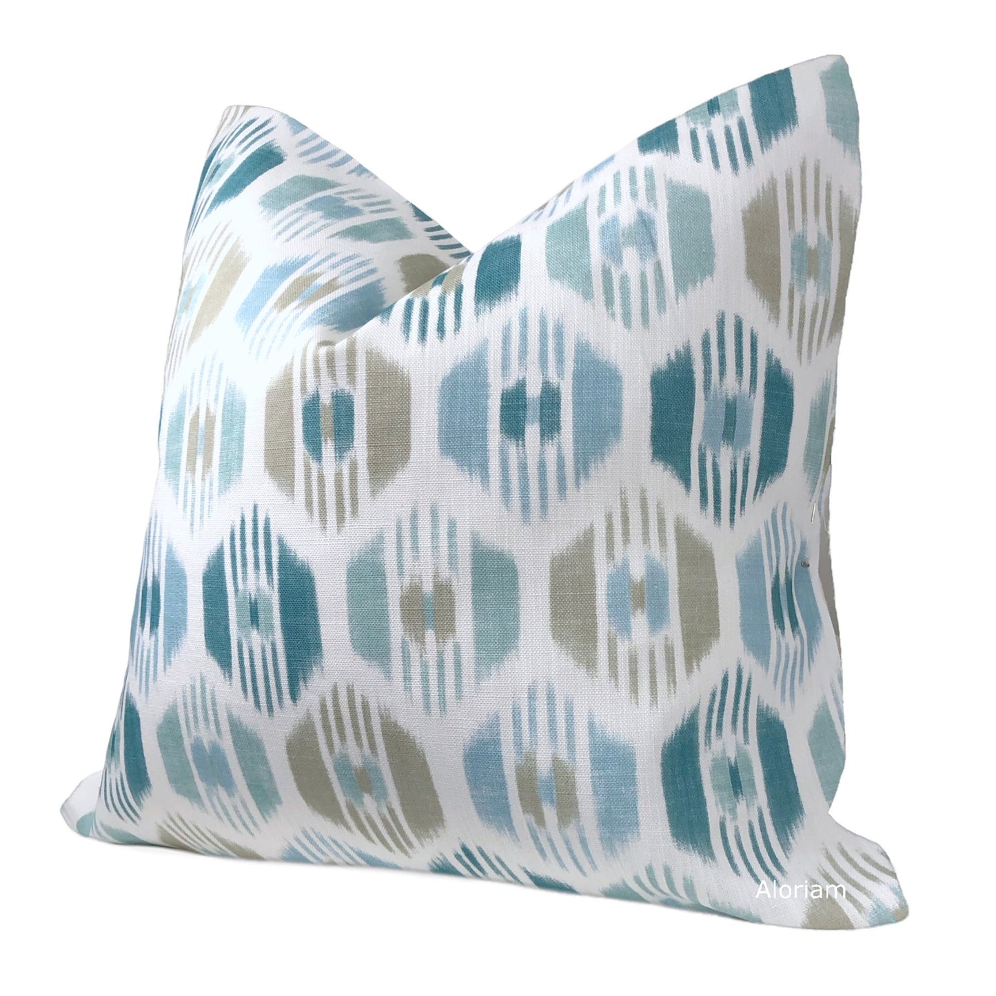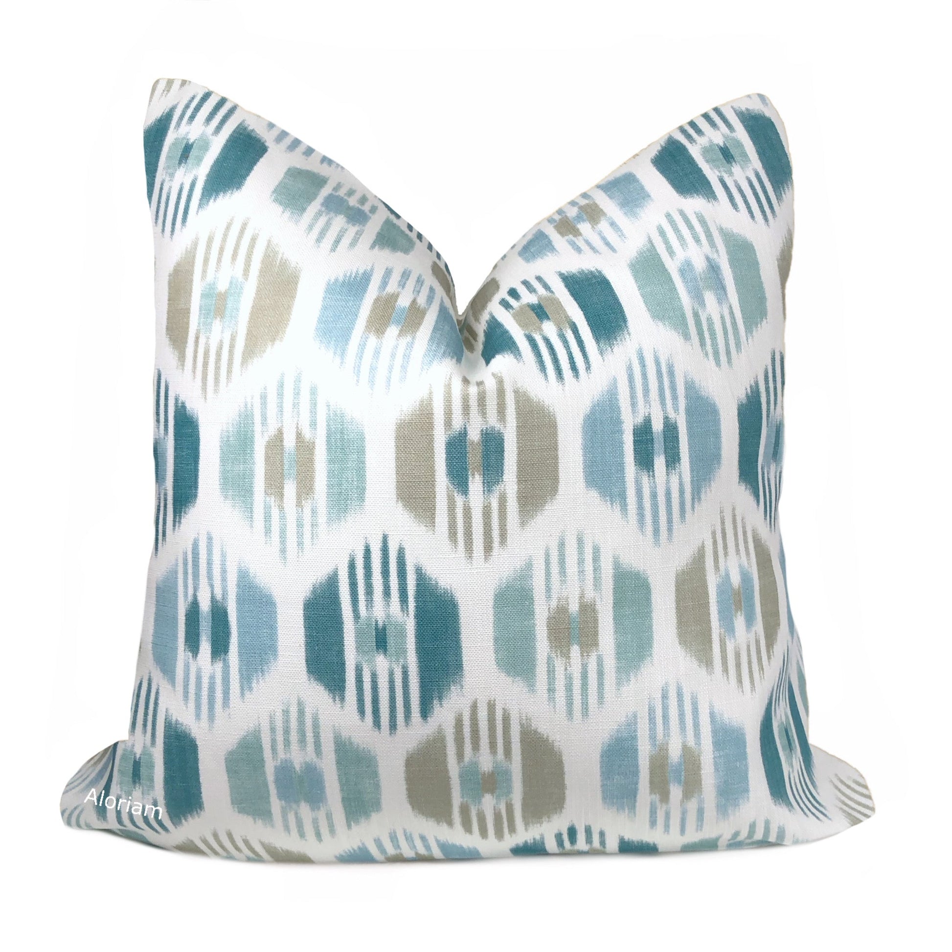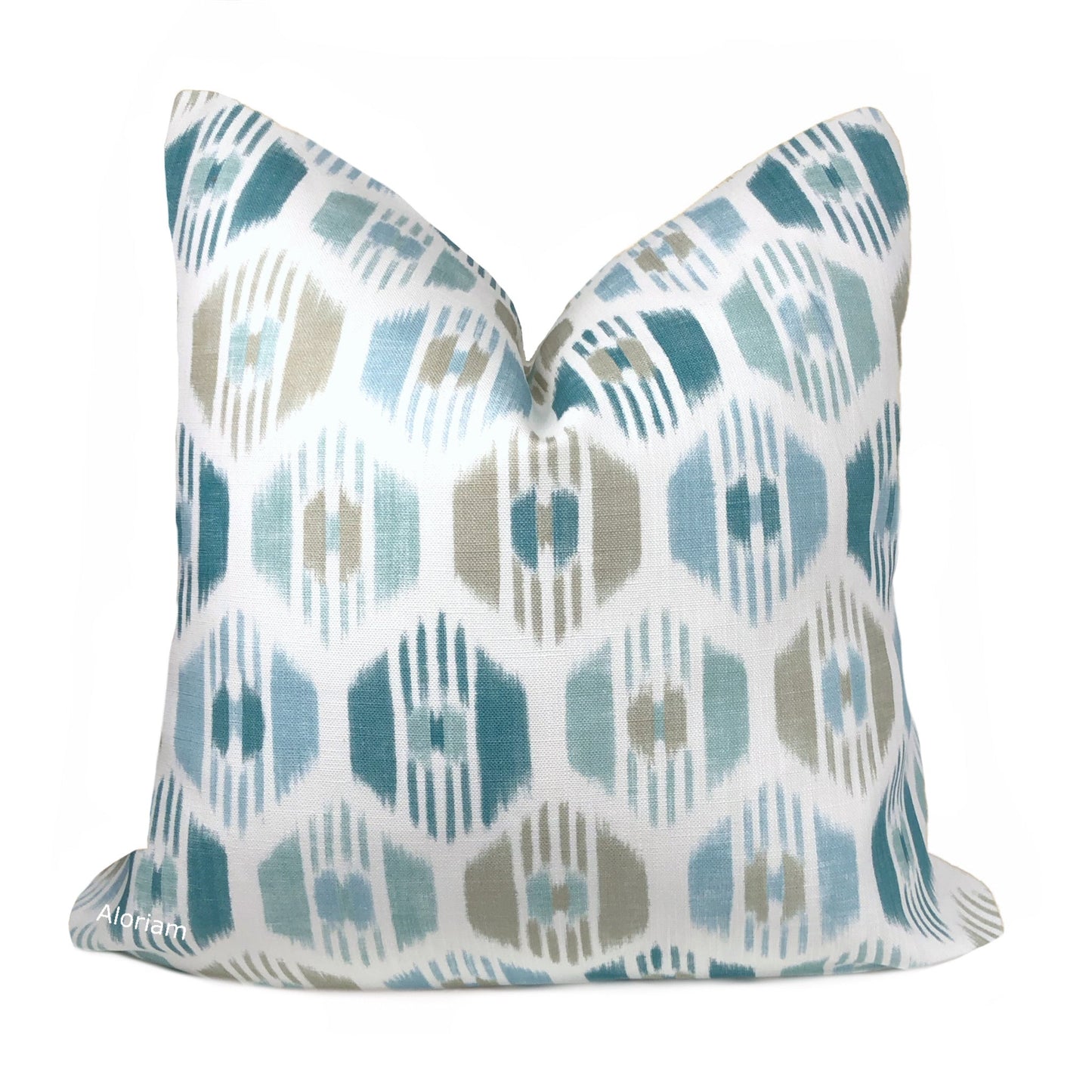 Caribana Aqua Blue Teal Taupe Brown Pillow Cover (Fabric by the Yard available)