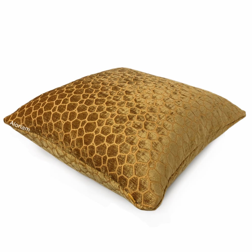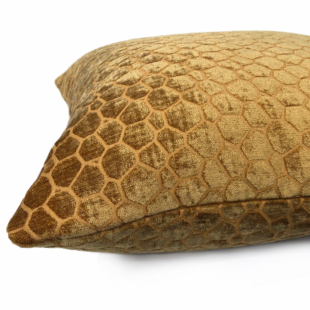 Carrick is a golden amber colored chenille pillow cover featuring an irregular geometric tile design. With a soft fuzzy texture, Carrick is a fabulous partner to many other patterns.