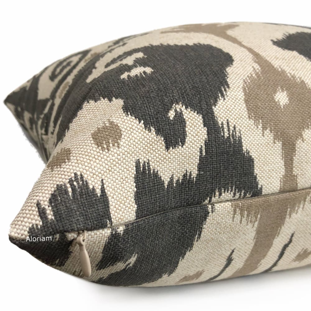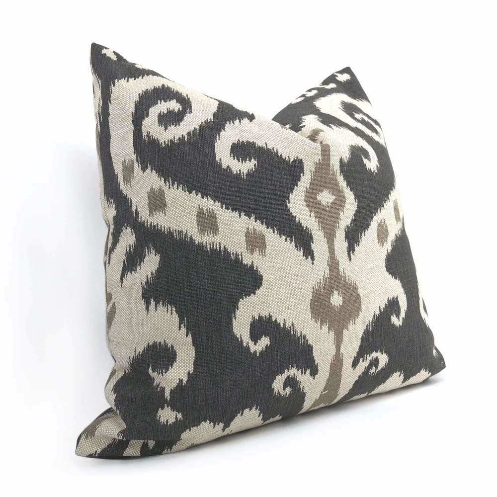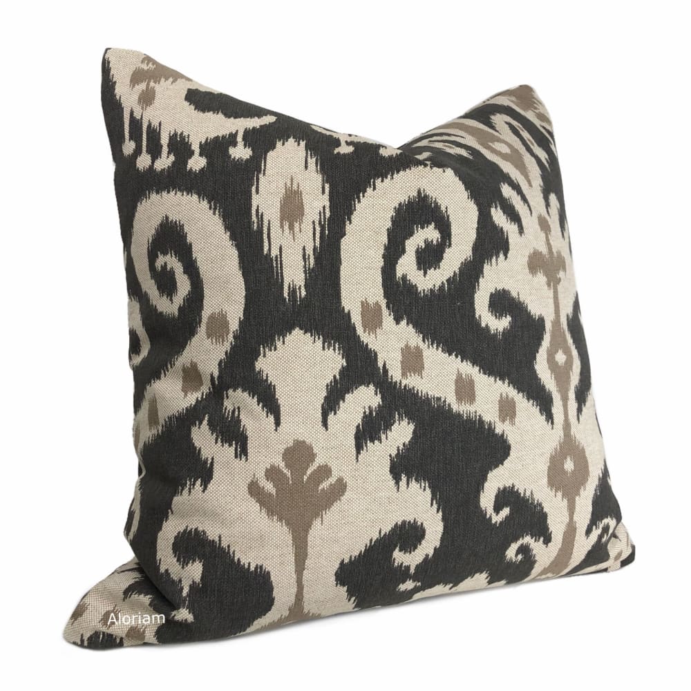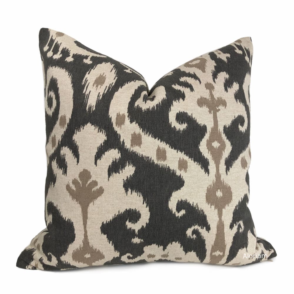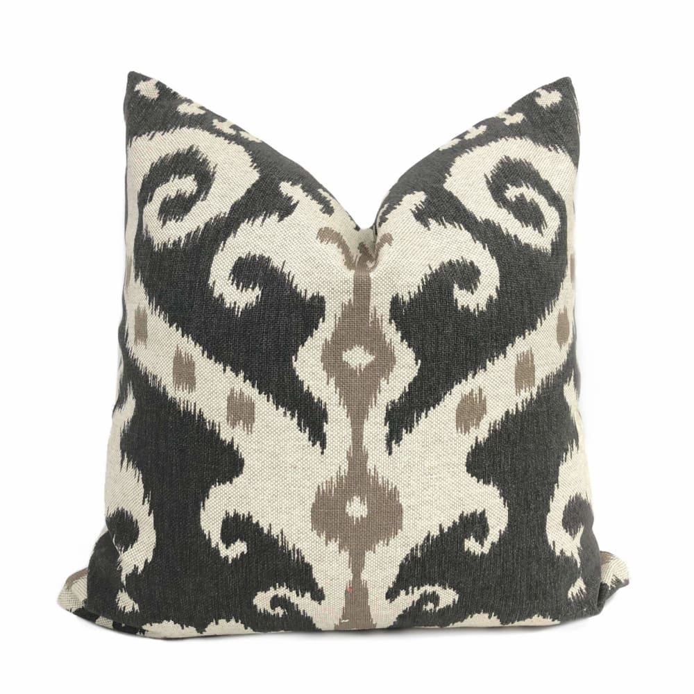 Casbah Charcoal Taupe Beige Ethnic Ikat Pillow Cover (Made from Lacefield Designs Fabric)