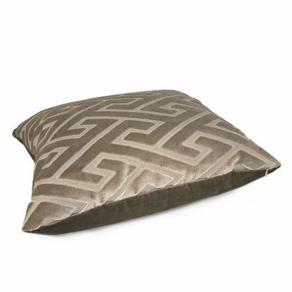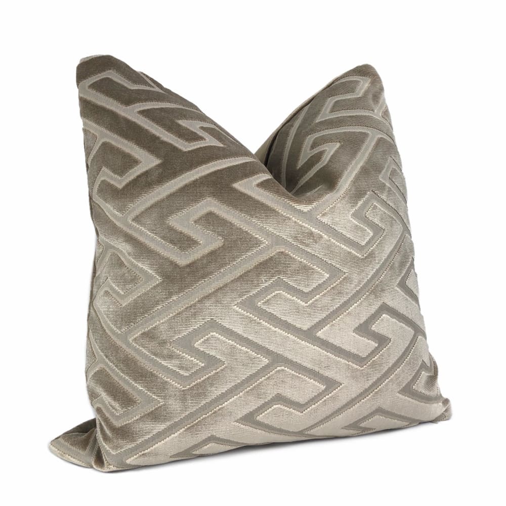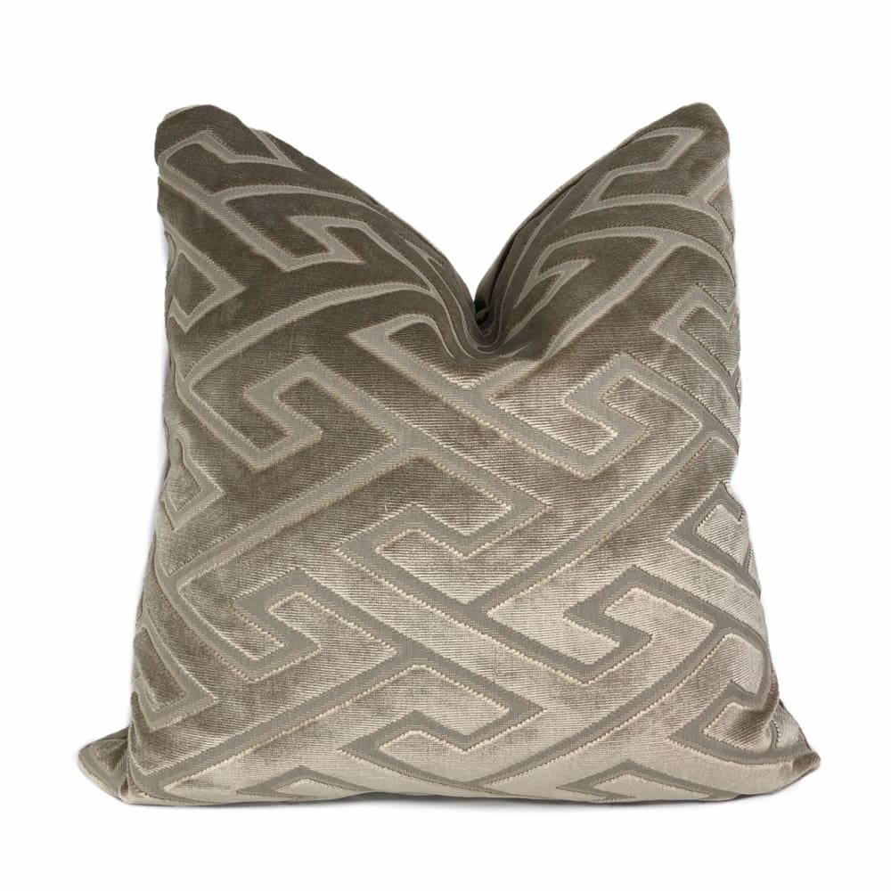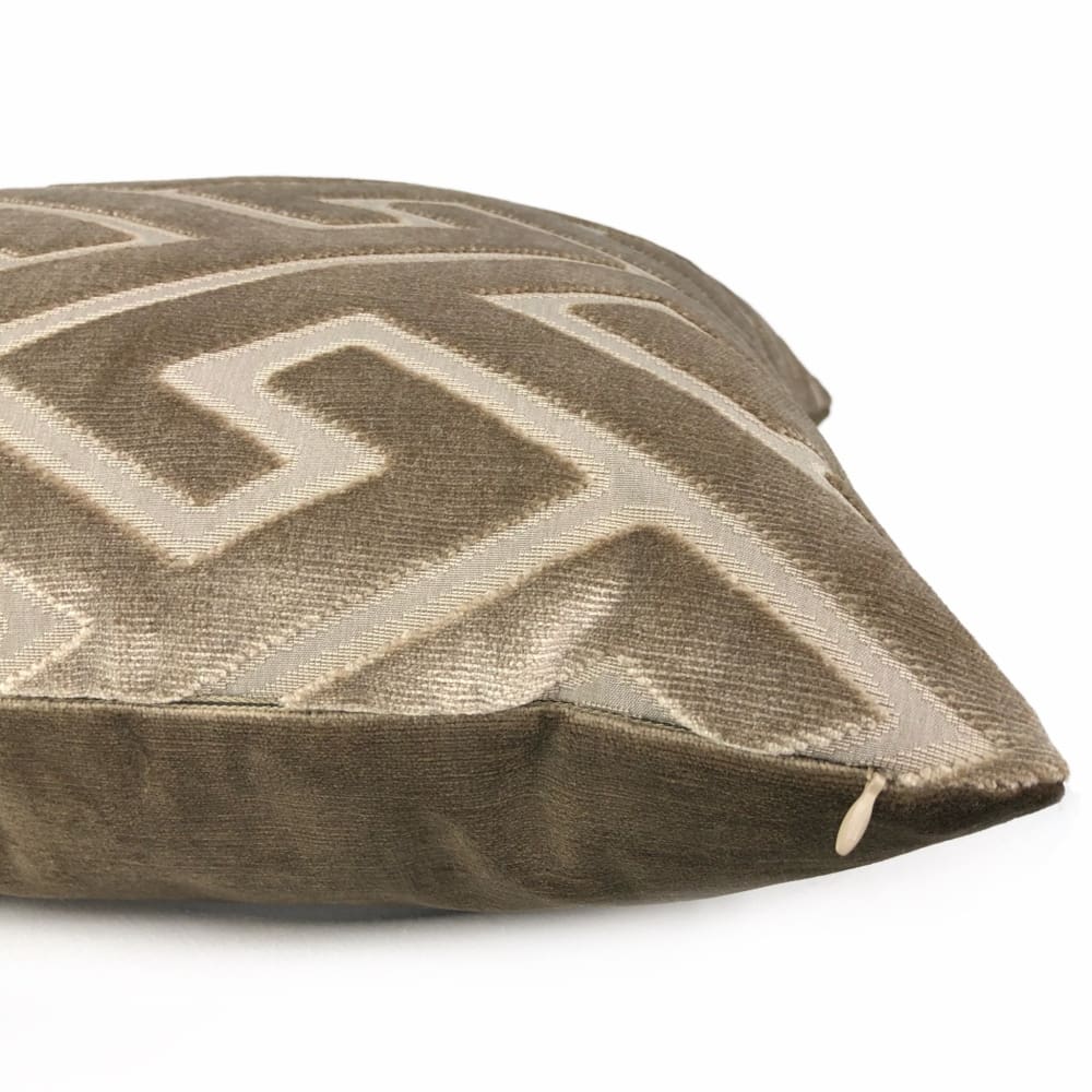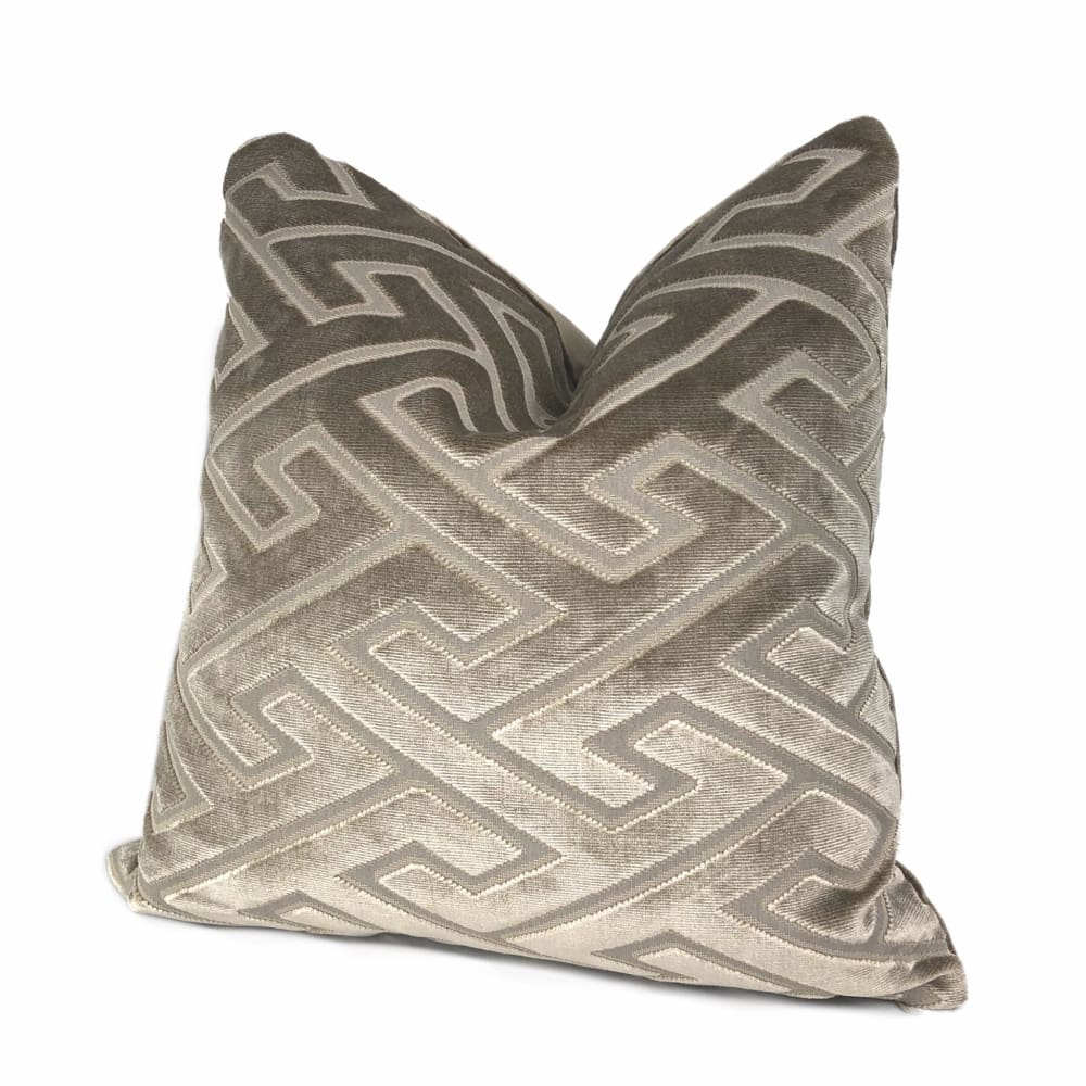 Castel Maison Bosco Sable Brown Greek Key Cut Velvet Pillow Cover