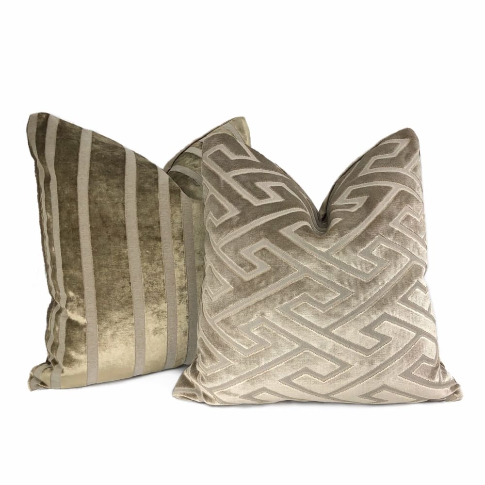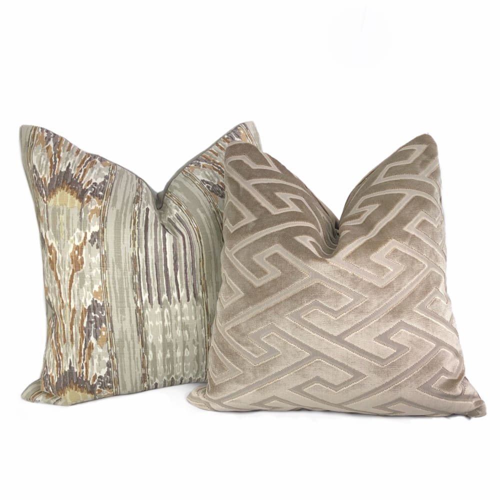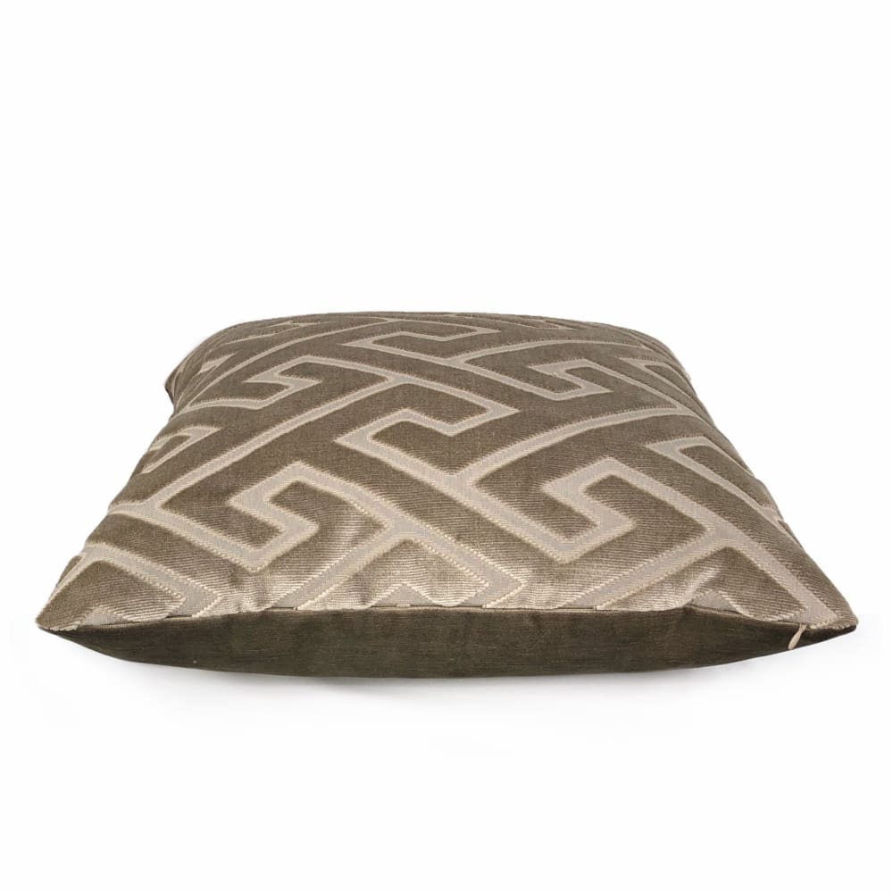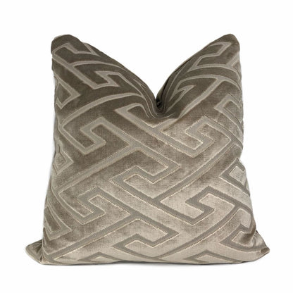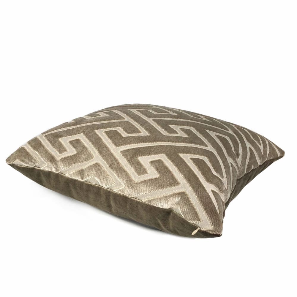 Castel Maison Bosco Sable Brown Greek Key Cut Velvet Pillow Cover