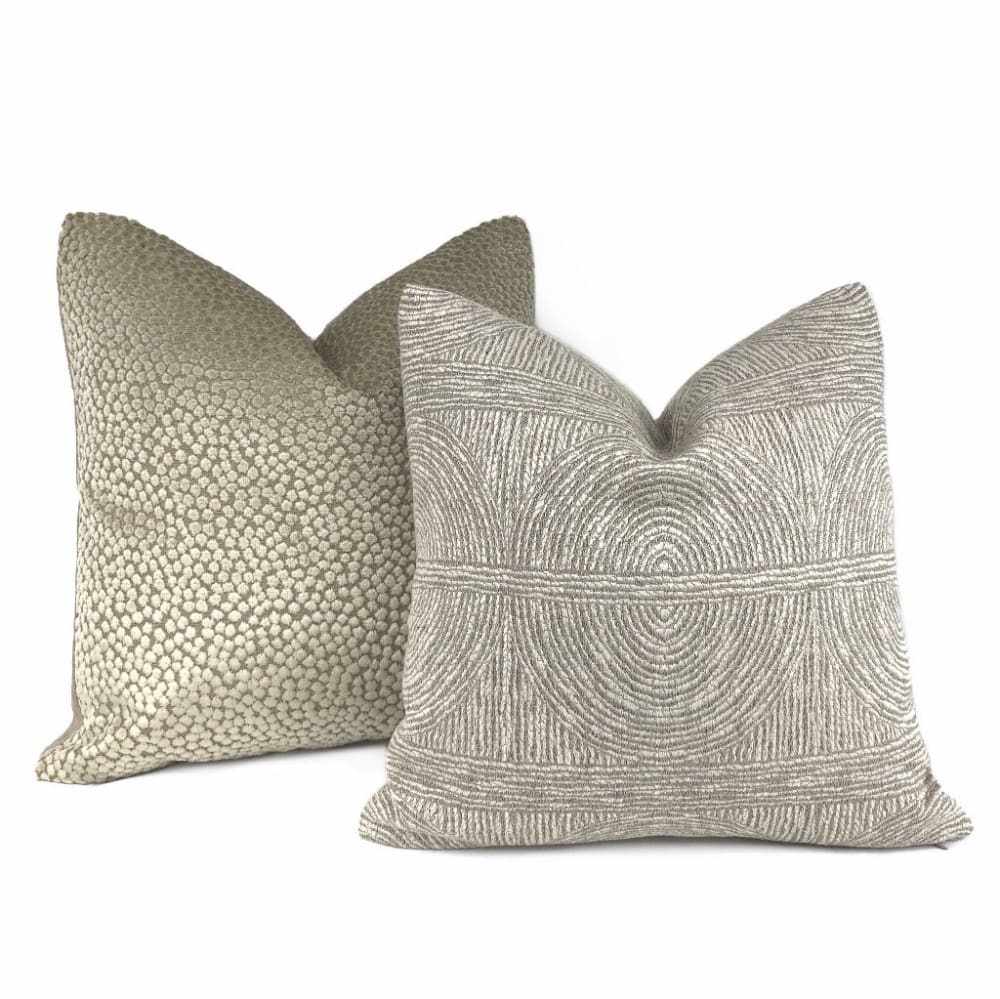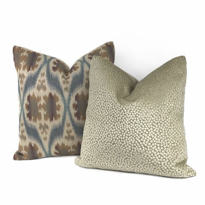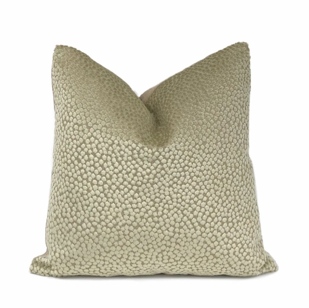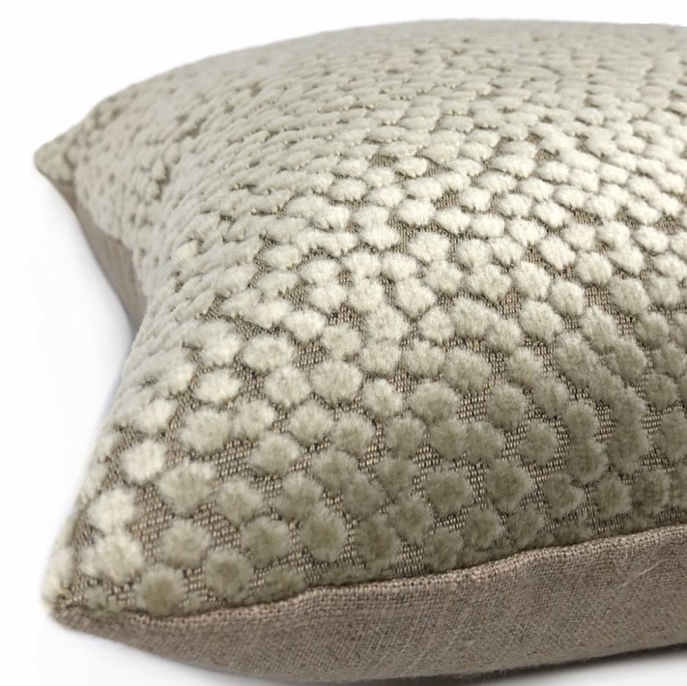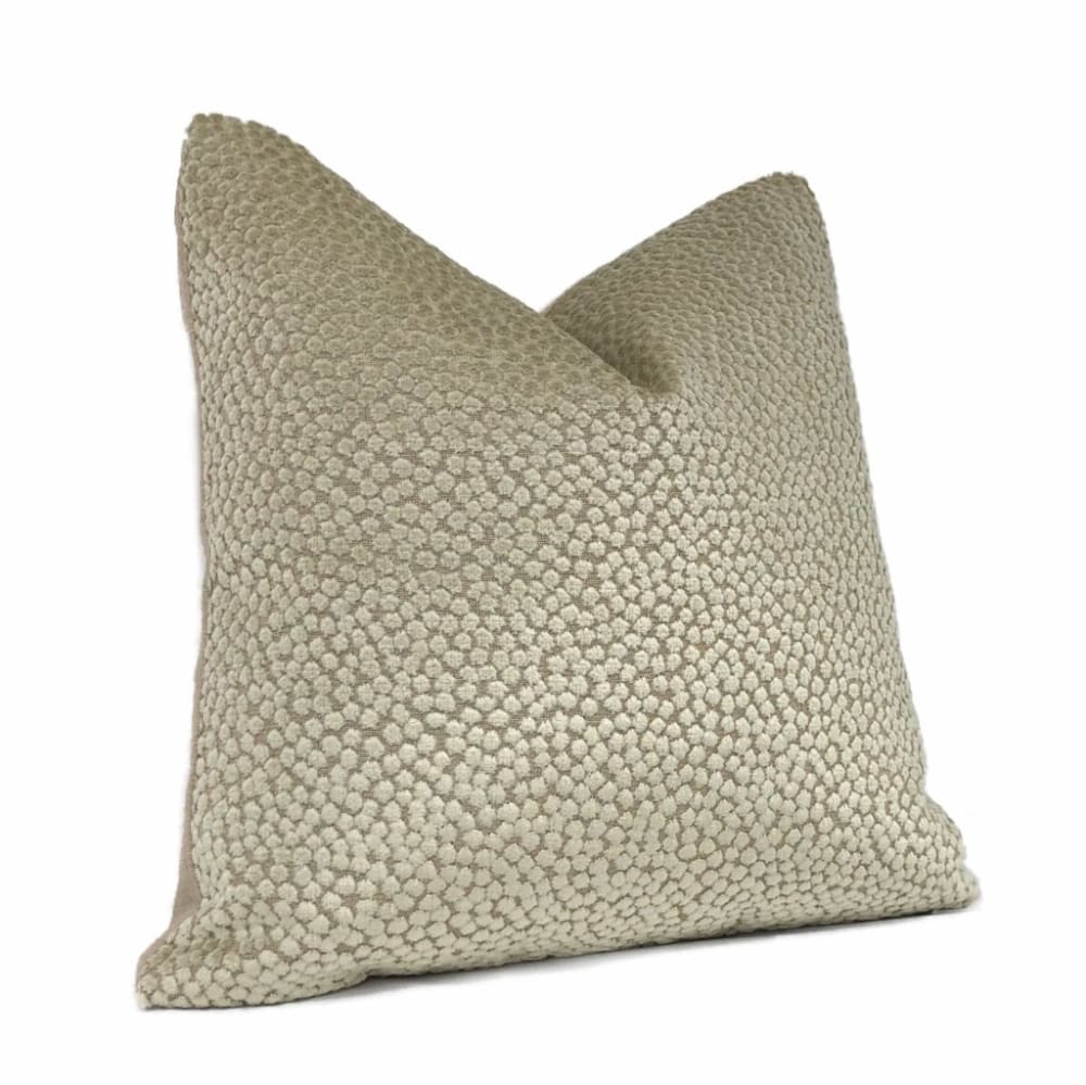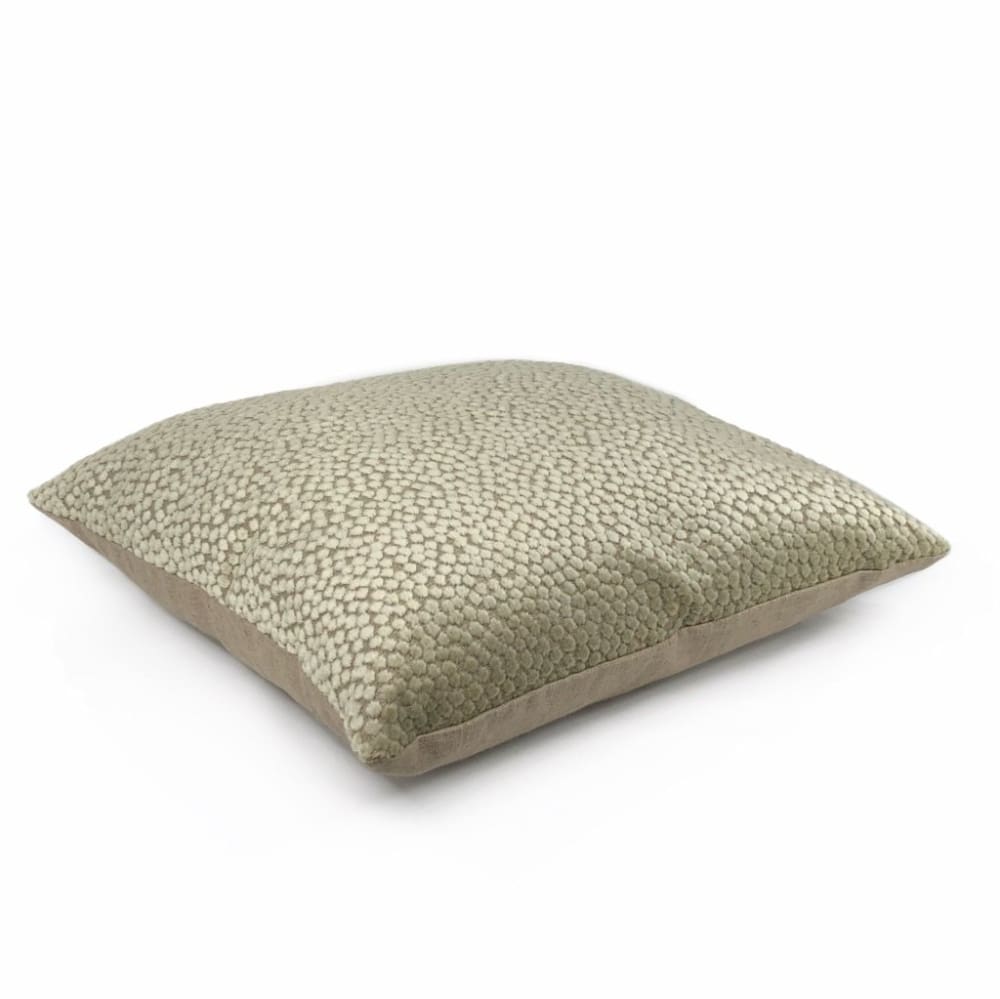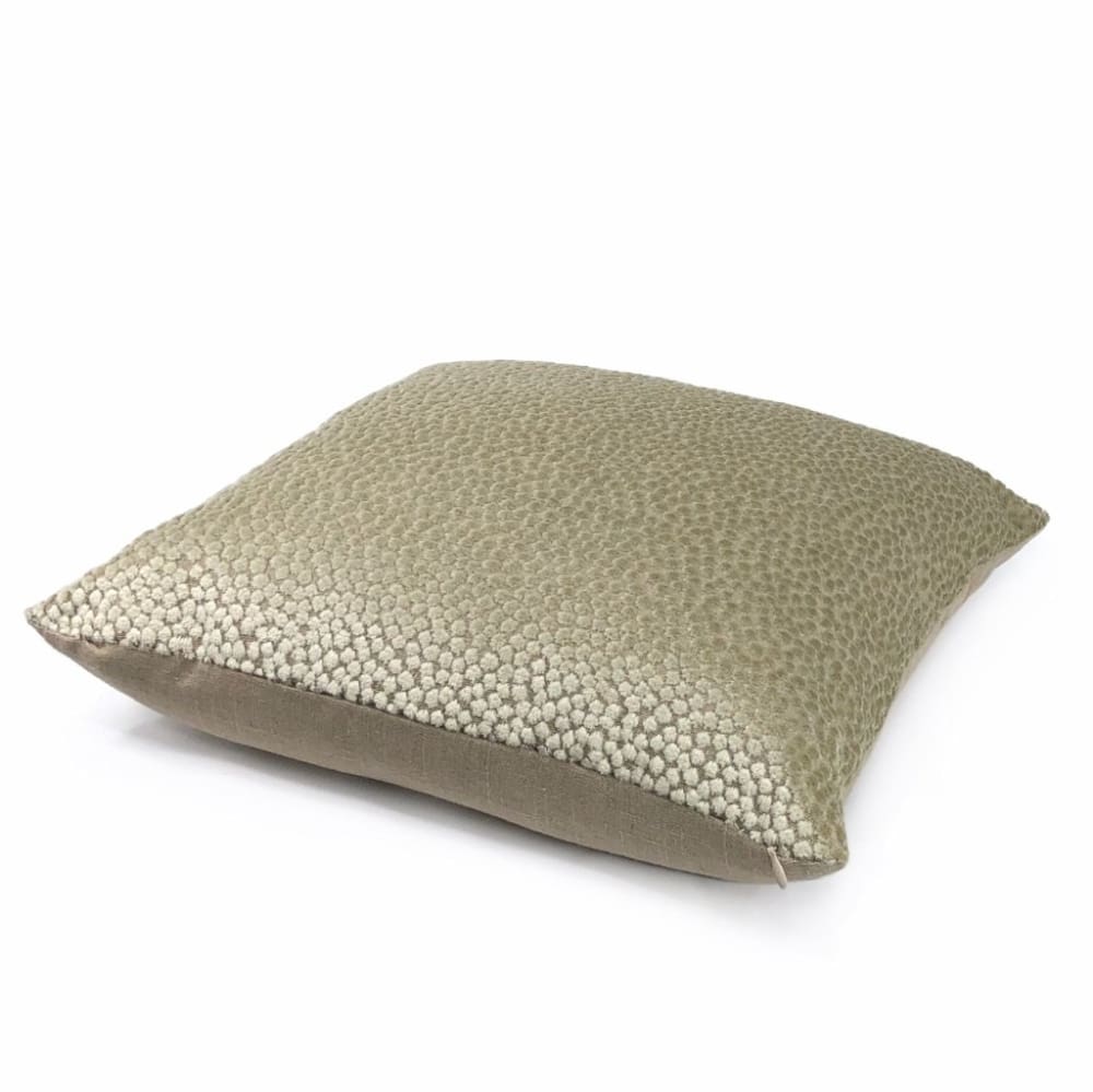 The Catelyn pillow cover features flaxed colored velvet dots woven on a dark beige background. Richly textured and gracefully sophisticated, the Catelyn pillow plays well with many other colors and patterns.