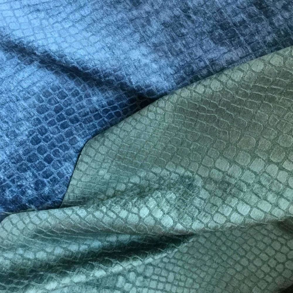 Cerulean Blue Crocodile Alligator Shiny Chenille Velvet Pillow Cover (Fabric by the Yard available)