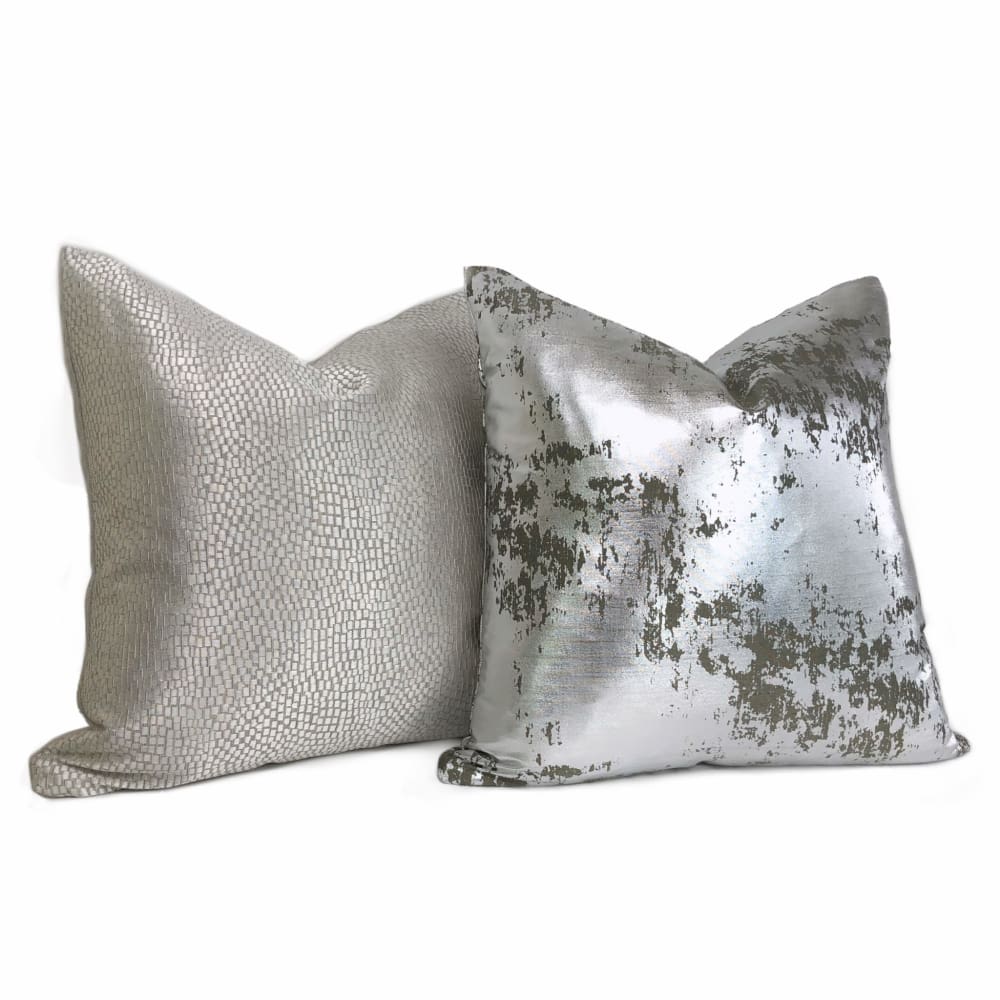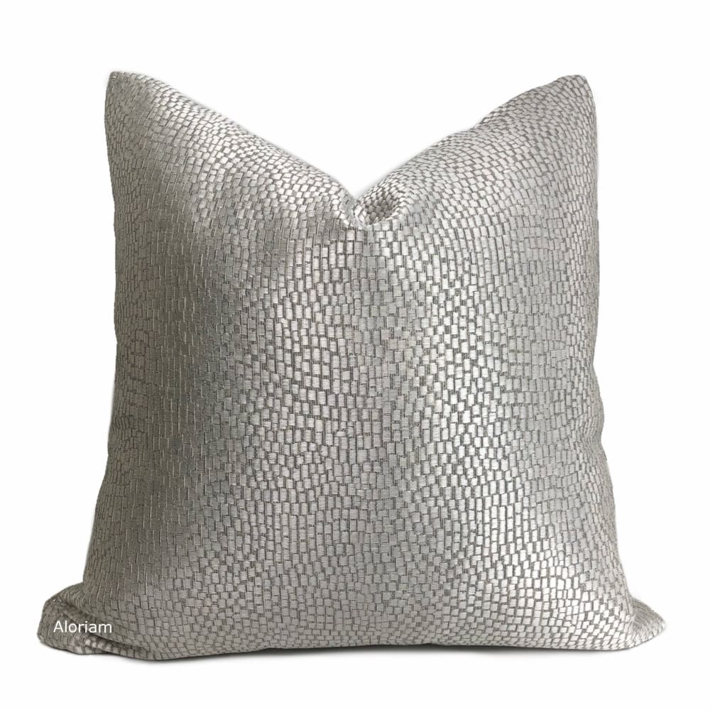 (CLEARANCE) Cinna Silver Gray Abstract Tile Pillow Cover