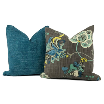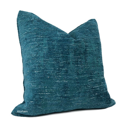 (CLEARANCE) Knox Peacock Teal Slub Textured Chenille Pillow Cover