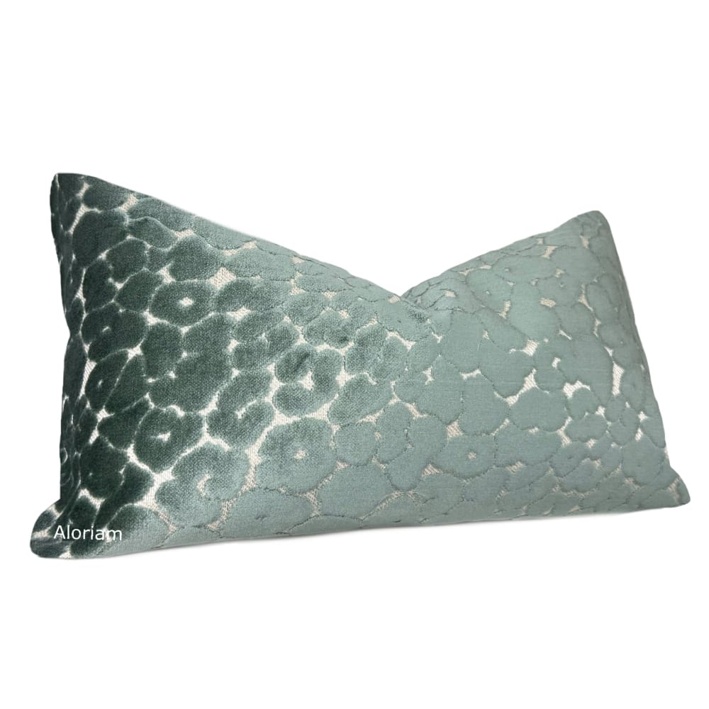 Phoebe is a leopard spot pillow cover woven in a muted mineral green velvet. Soft and luxurious, this is one leopard print pillow you want to have in your home. Phoebe is classy, sophisticated and comes in several lovely colors!