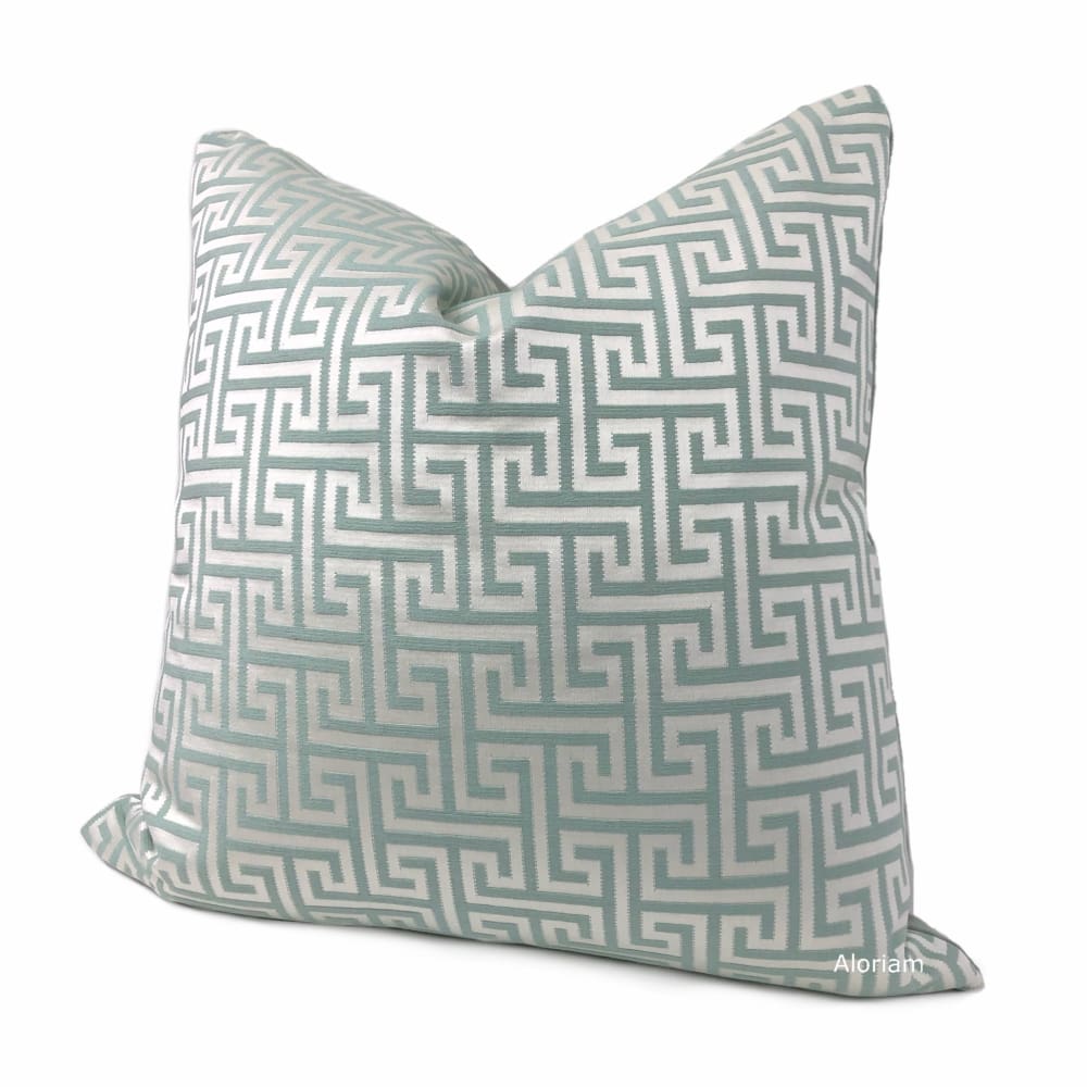 Cleo Seaglass Aqua Green Greek Key Pillow Cover
