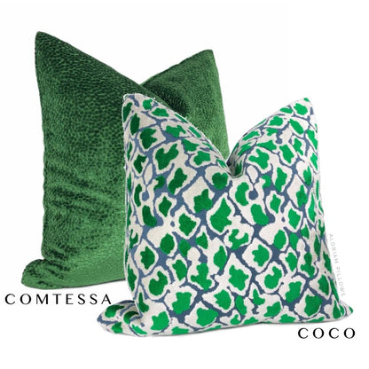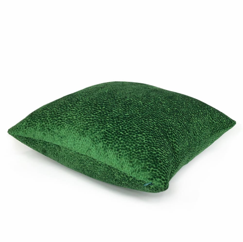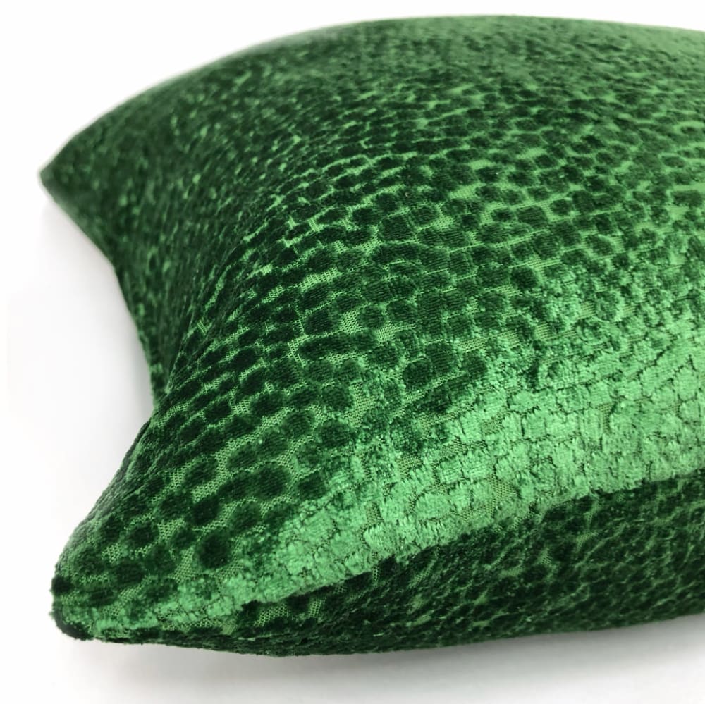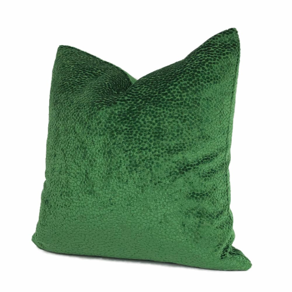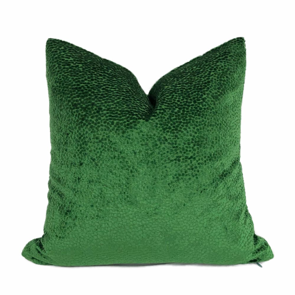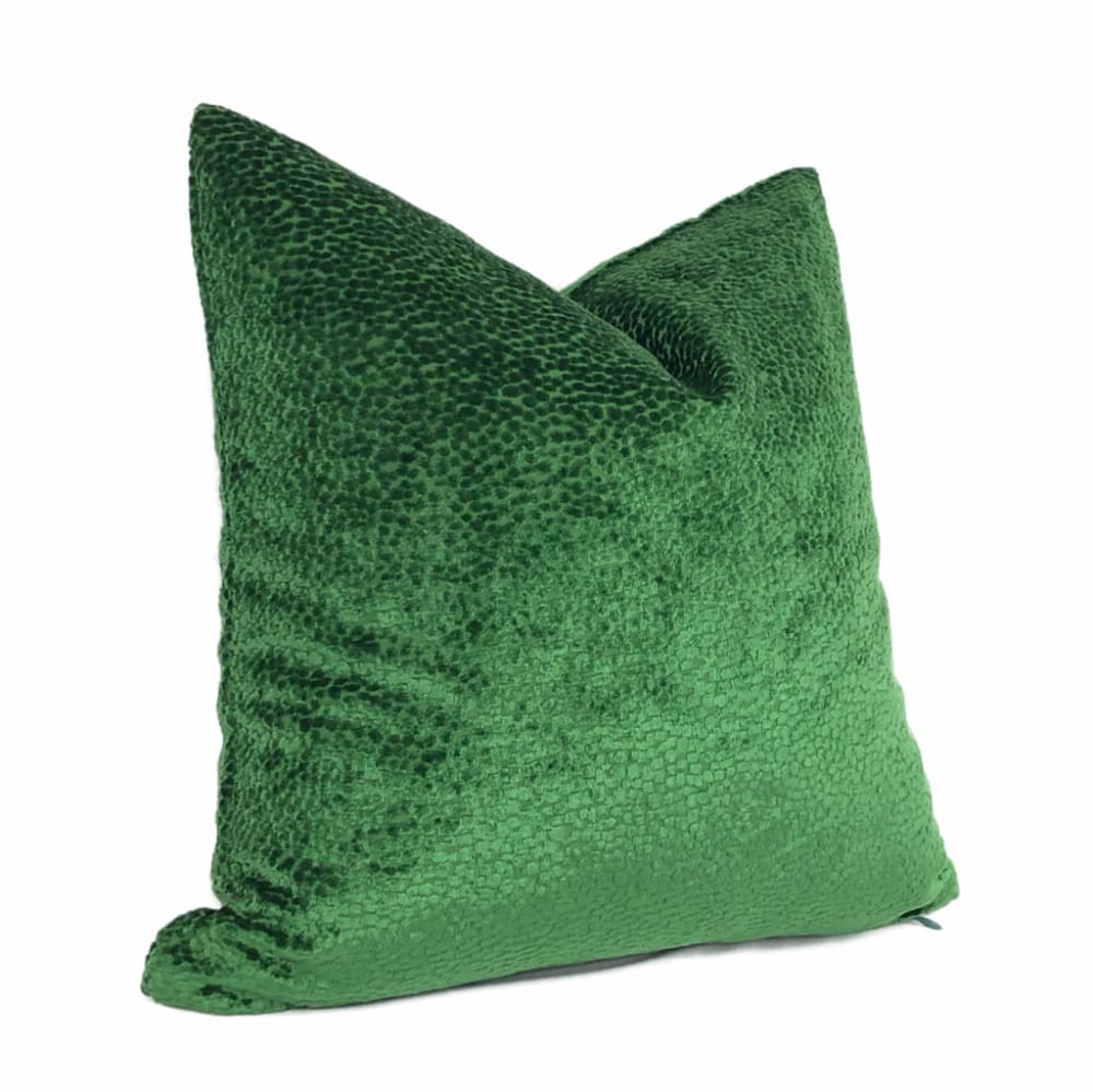 The Comtessa pillow offers small textured velvet dots woven in a dazzling emerald green velvet that shines so beautifully under the light.