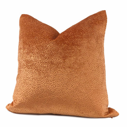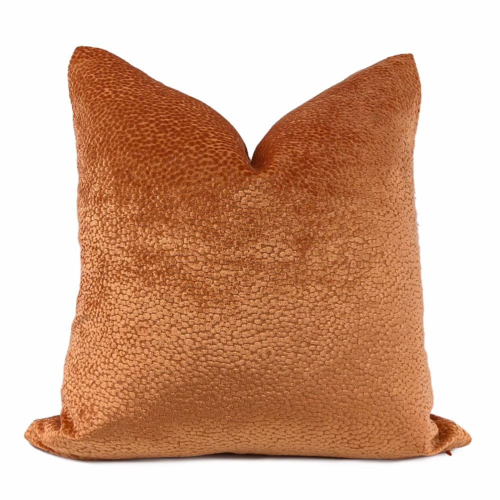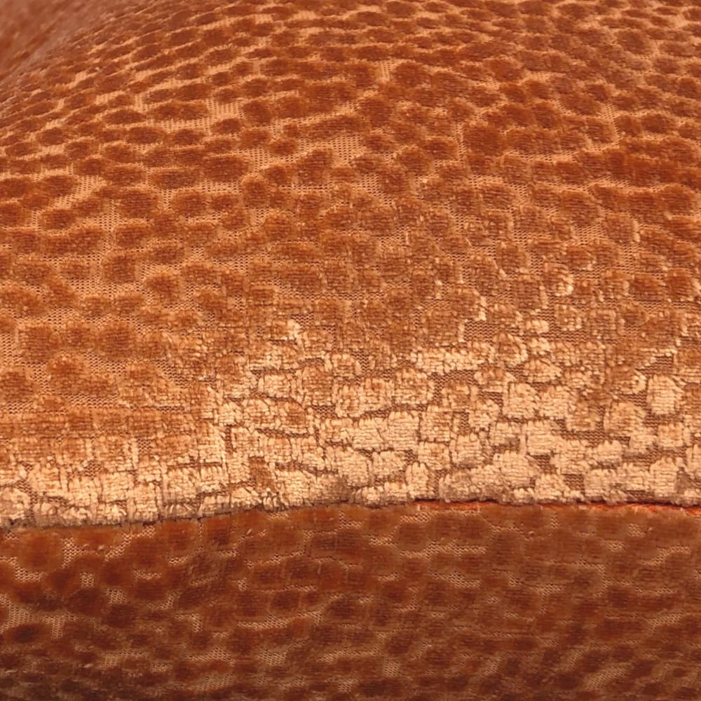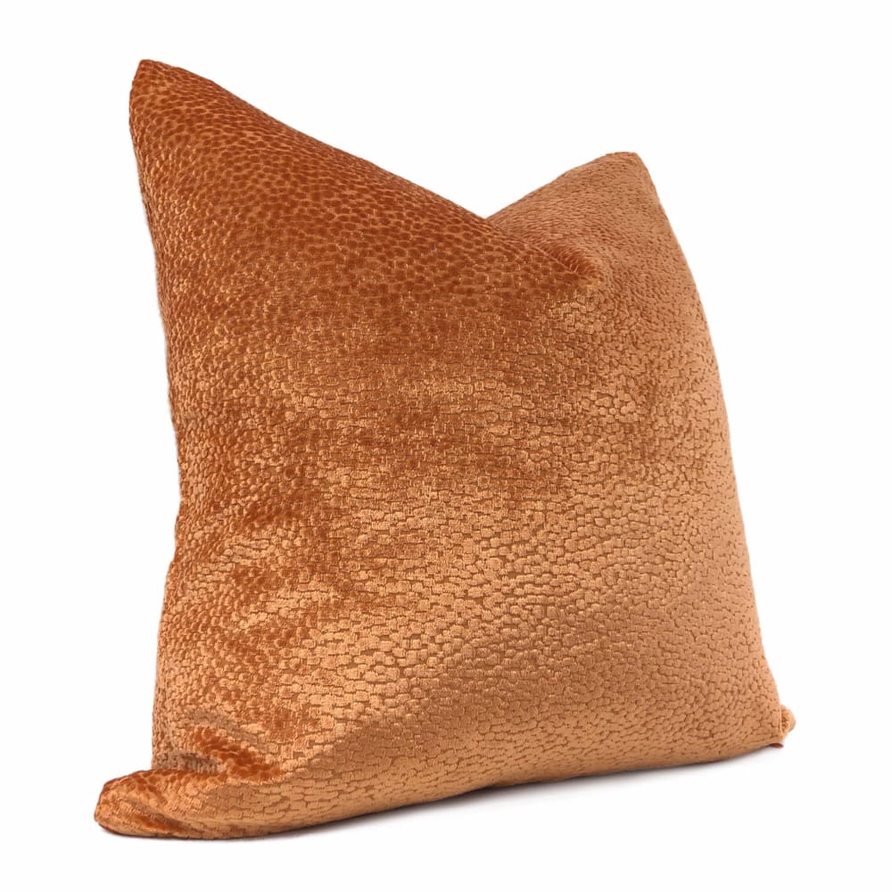 The Comtessa pillow offers small textured velvet dots woven in a dazzling tangerine orange velvet that shines so beautifully under the light.