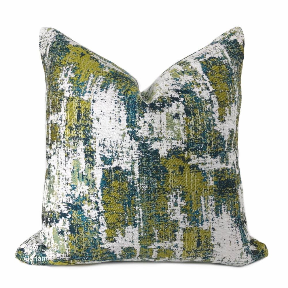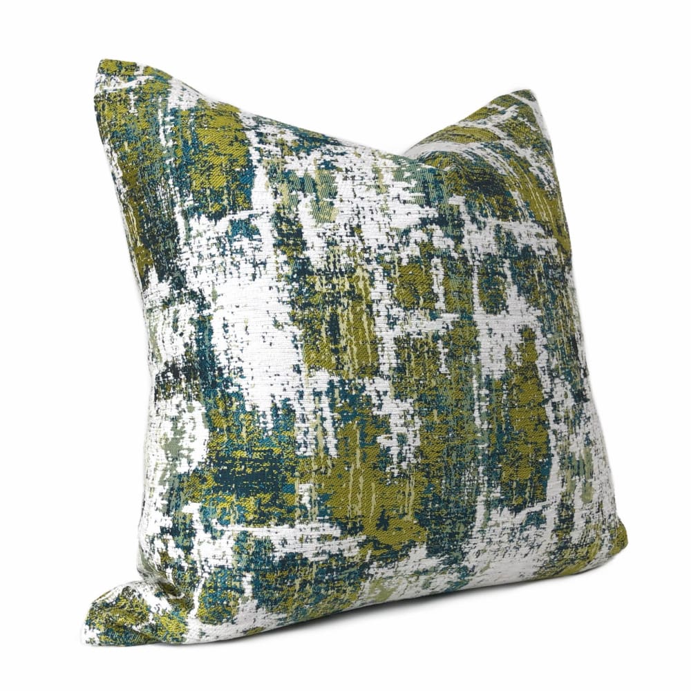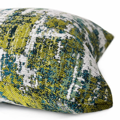 Conti Green Teal White Abstract Woven Texture Pillow Cover