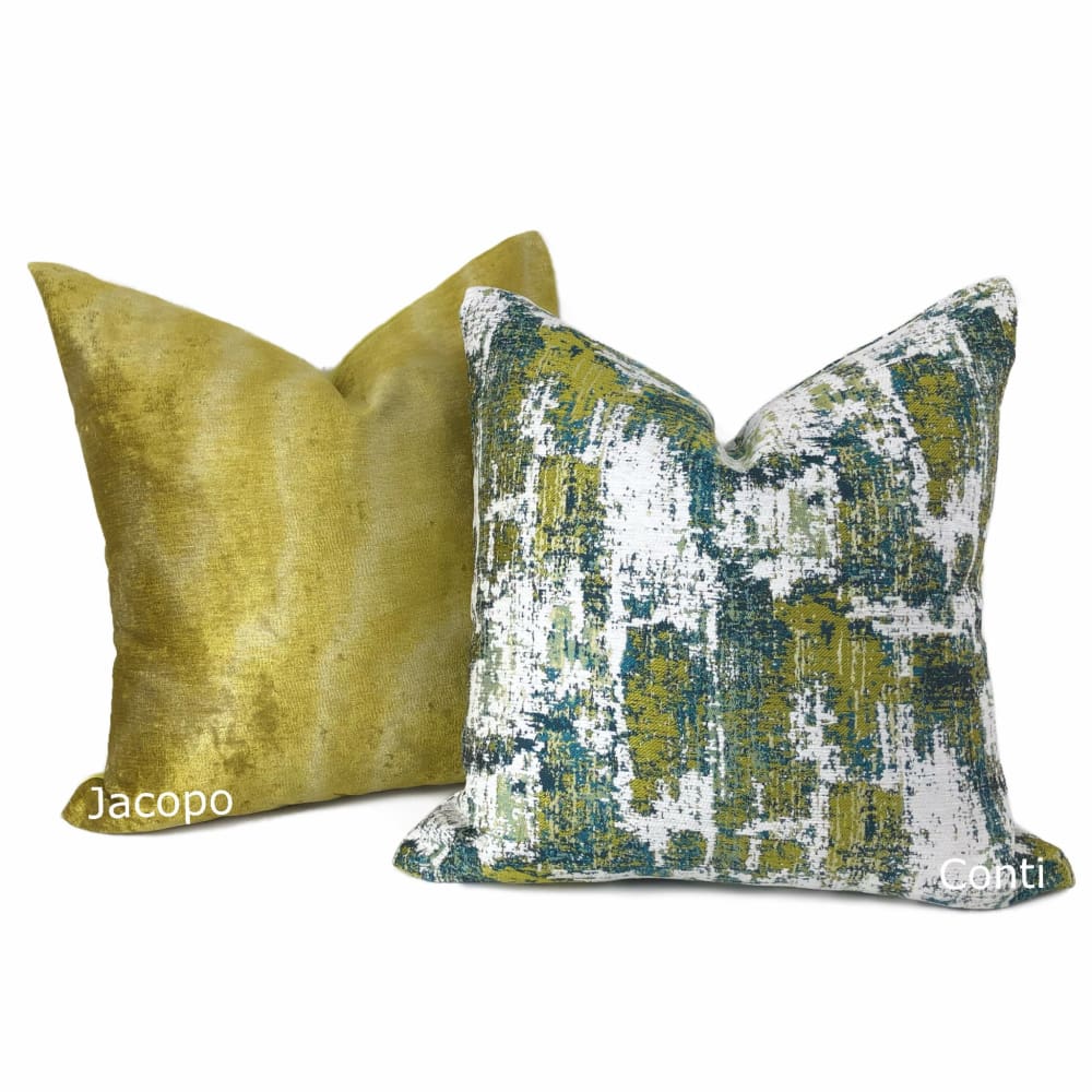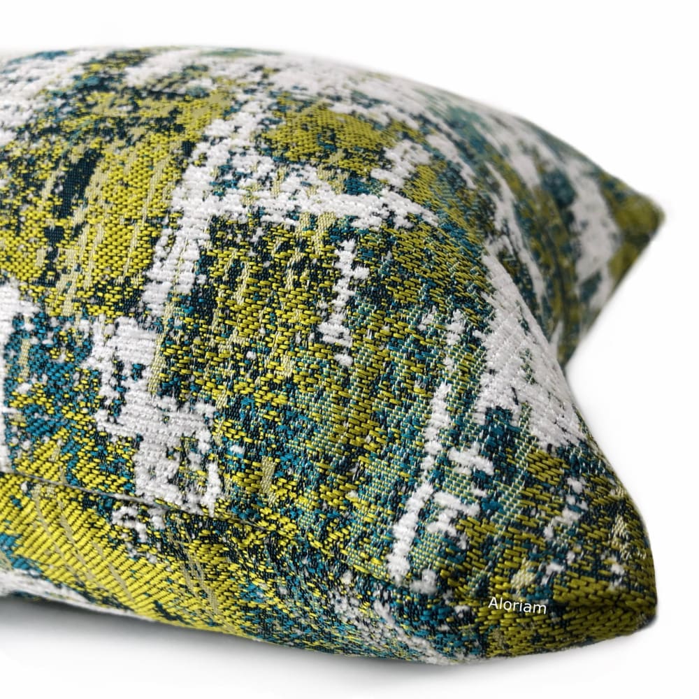 Stunning woven textures in colors of green, teal and off-white make the Conti pillow cover a perfect choice for any modern or contemporary interior.