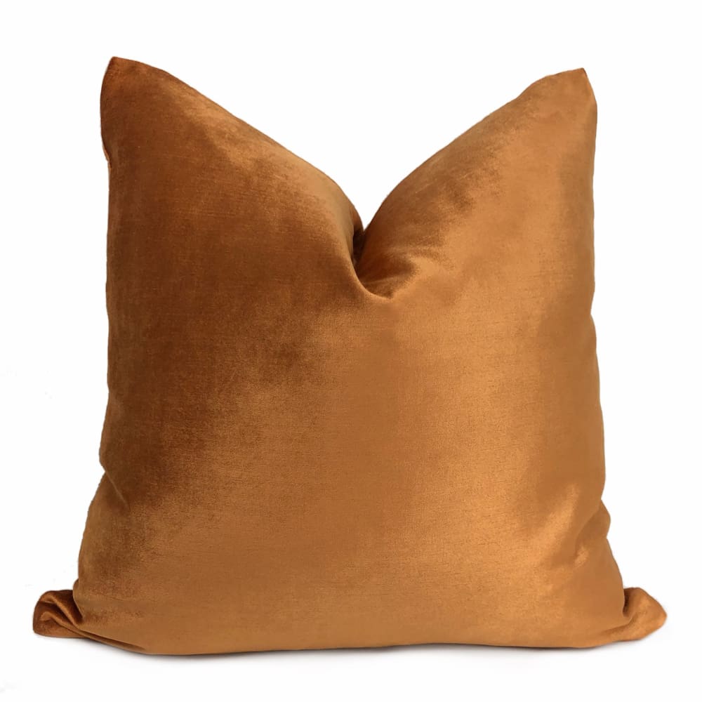 Richly colored with a lustrous shine, this solid copper orange velvet pillow cover will saturate your space with light and warmth.