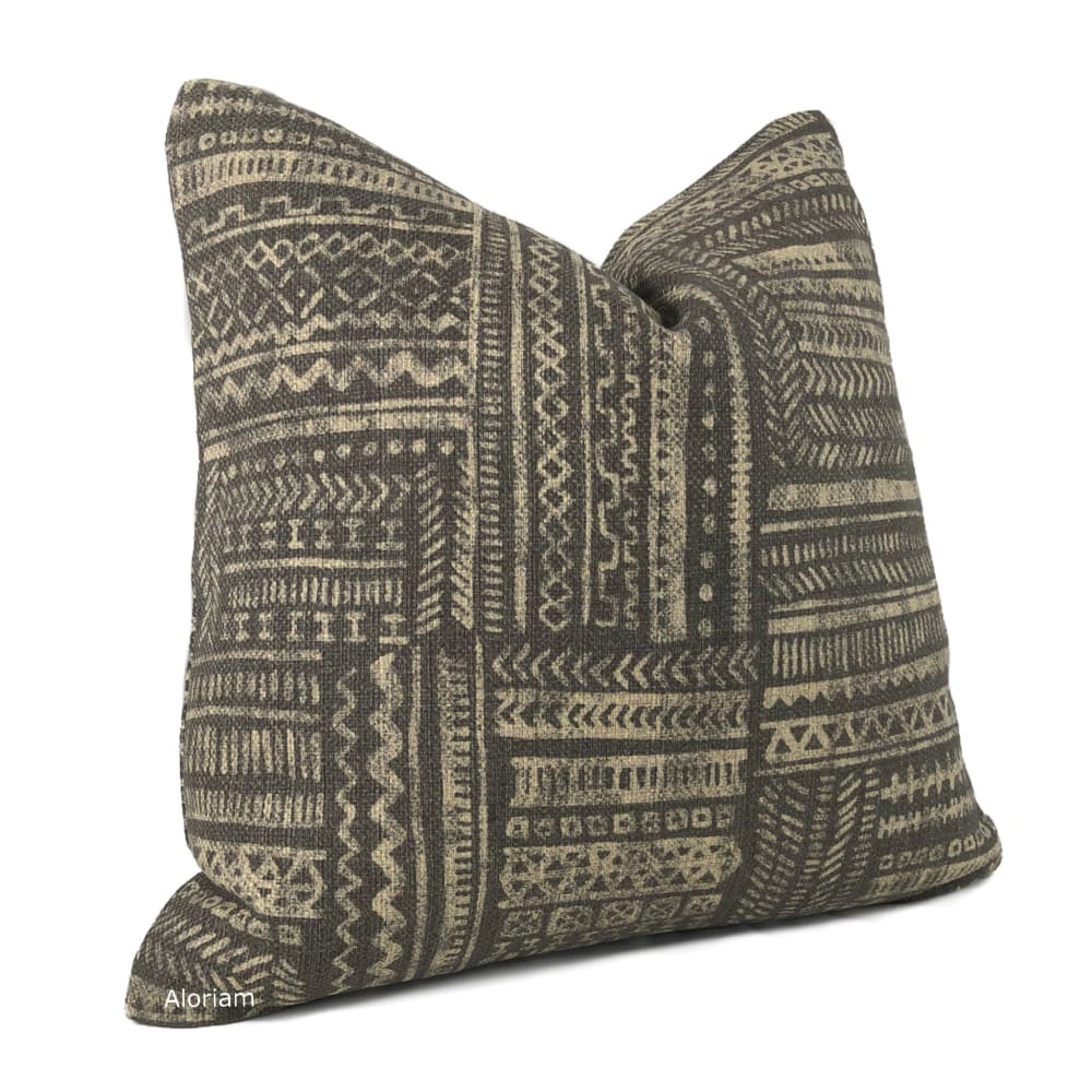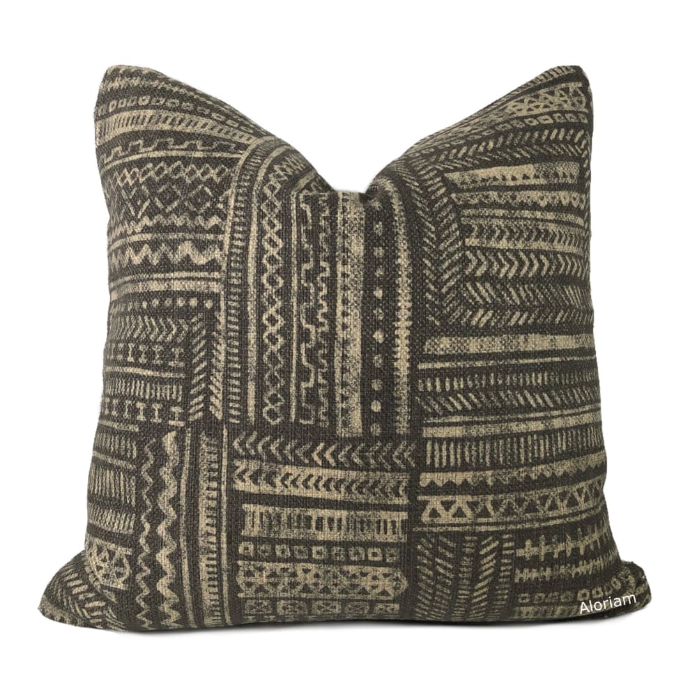 Banba African Ethnic Onyx Tan Mudcloth Print Pillow Cover