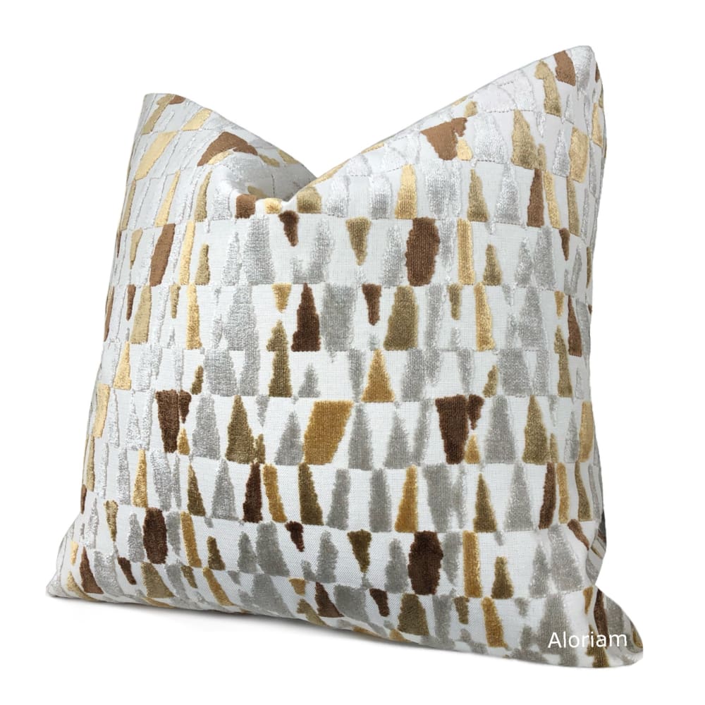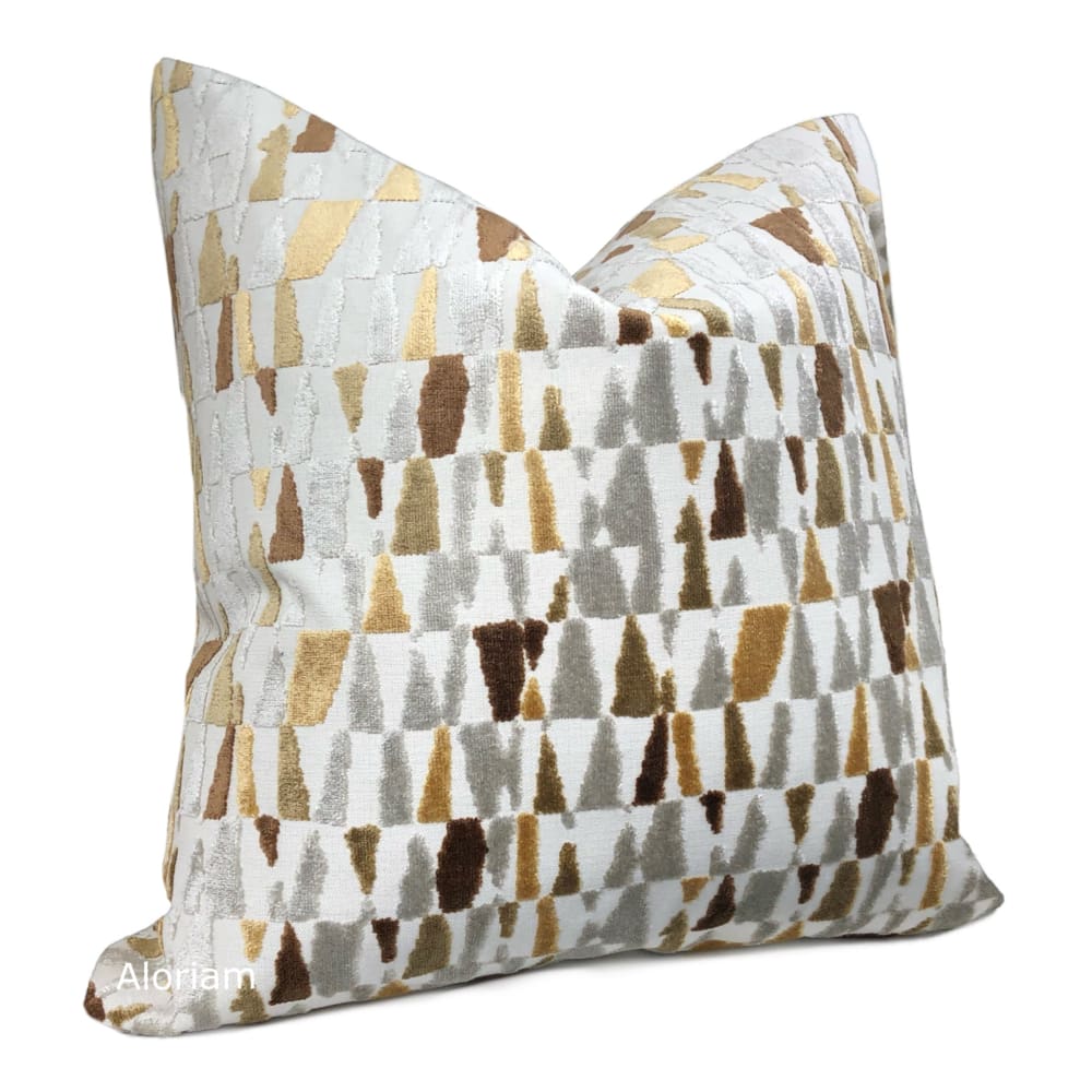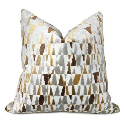 Cyrus III Golden Brown Gray Cream Velvet Pillow Cover