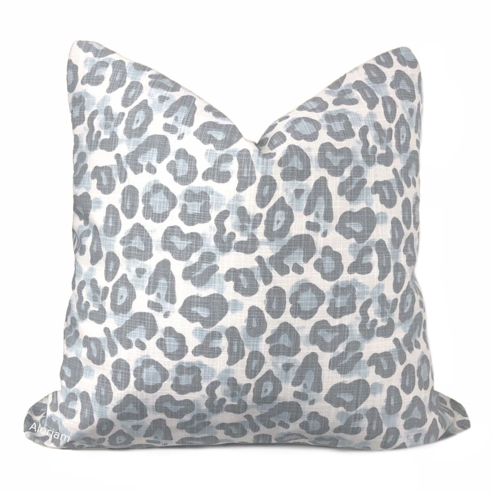 Damon Light Blue Gray Leopard Print Pillow Cover