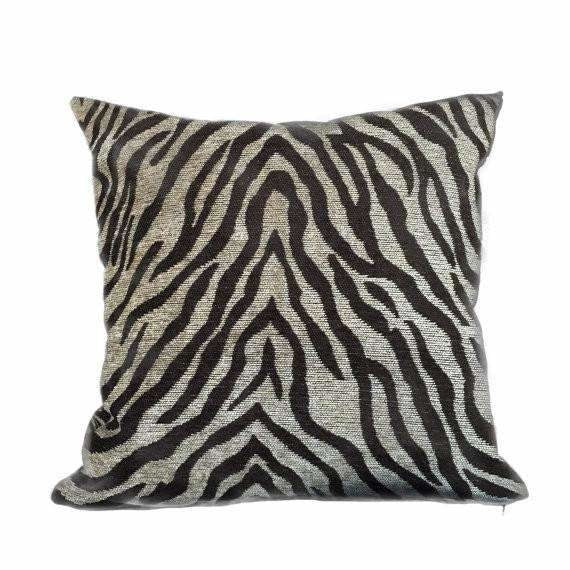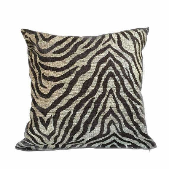 This stunning pillow cover is made from a soft faux tiger stripe designer chenille fabric in dark brown and medium beige. Pillows like this are commonly featured in celebrity and designer homes in magazines, now it's time to have your very own! Limited availability!