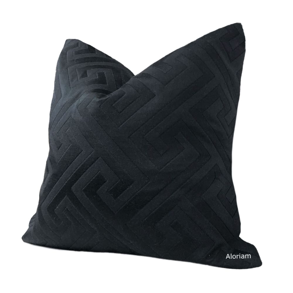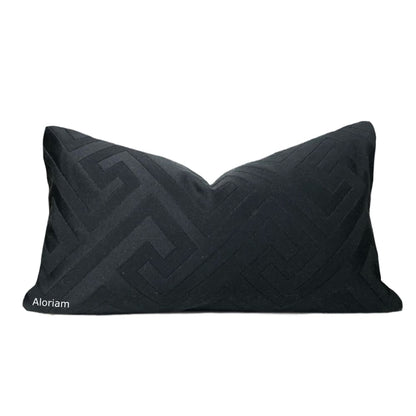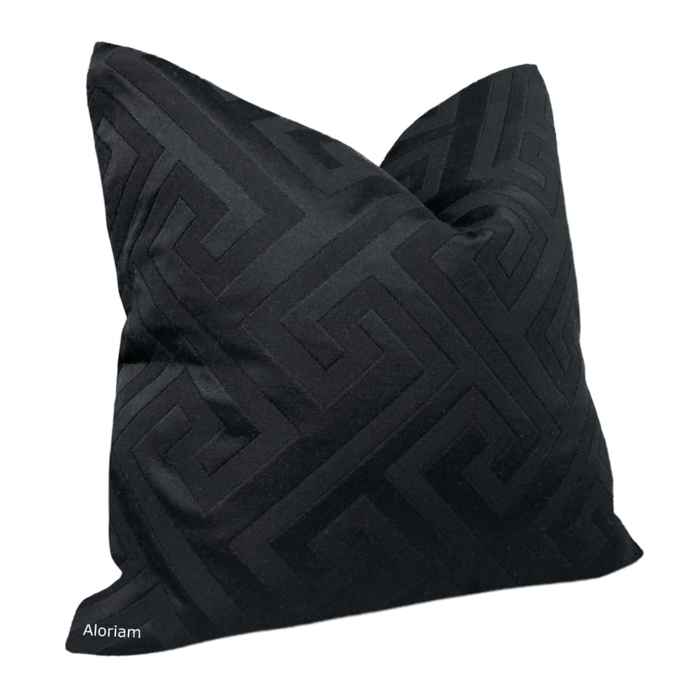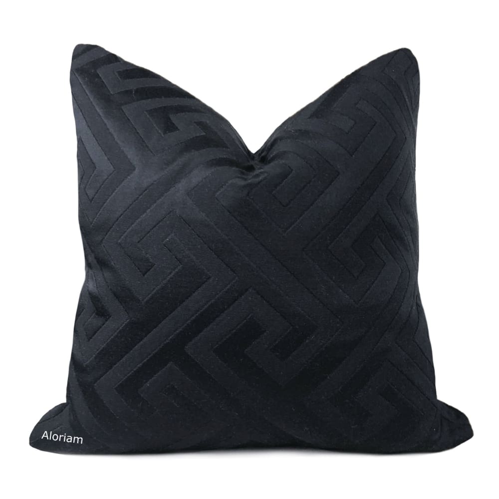 Delos is a bold Greek key pillow cover woven in two tones of black.