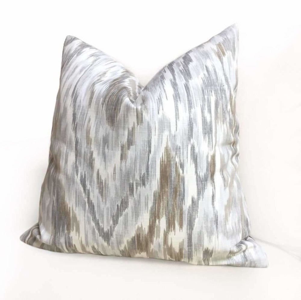(CLEARANCE) K'vali Abstract Ikat Gray Brown Off-White Cotton Print Pillow Cover