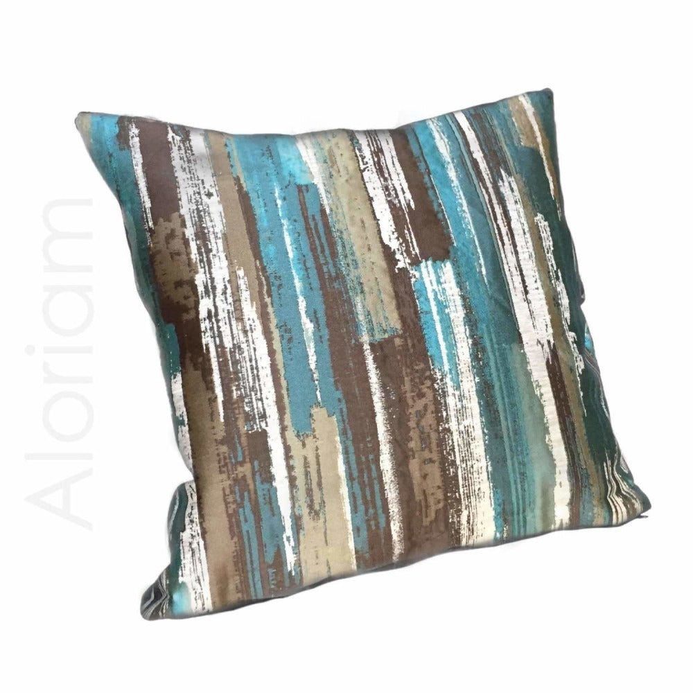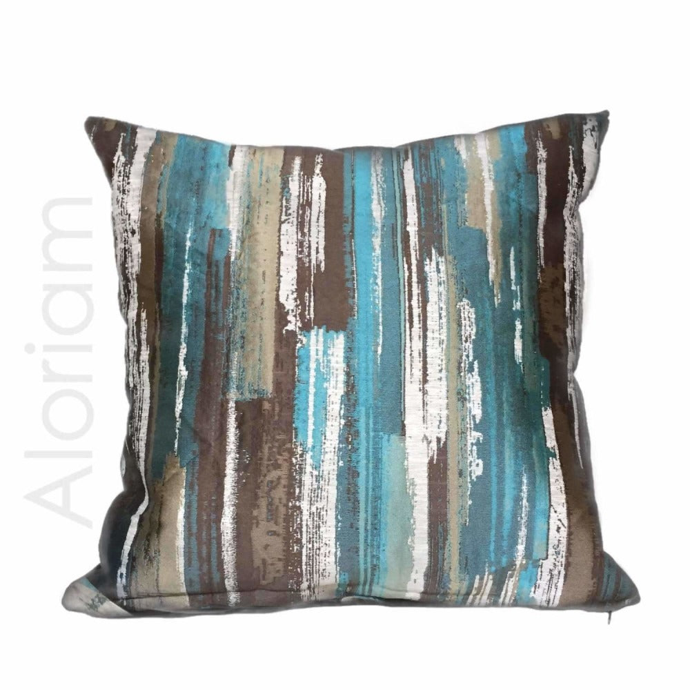 (CLEARANCE) Designer Abstract Paint Brush Strokes Teal Green Brown Beige Pillow Cover