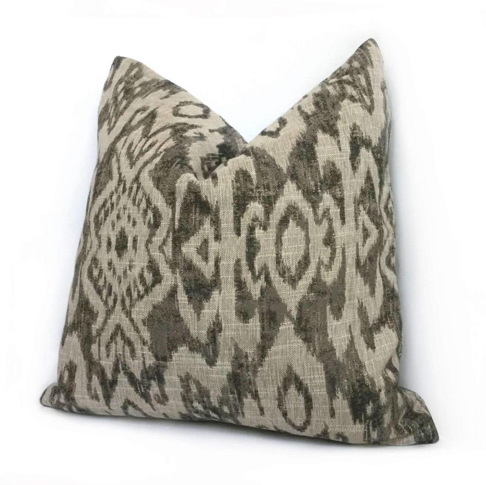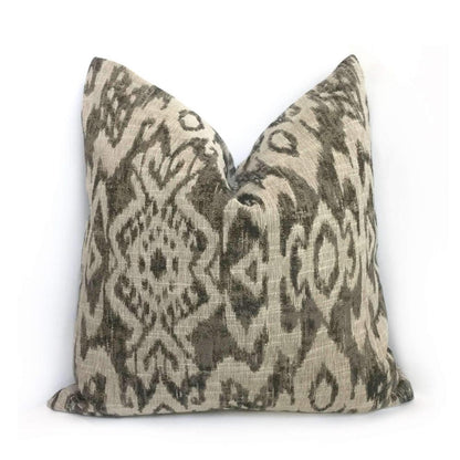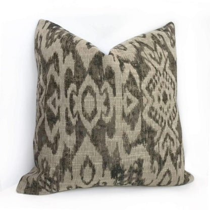 Designer Ethnic Ikat Tribal Gray Tan Upholstery Pillow Cover