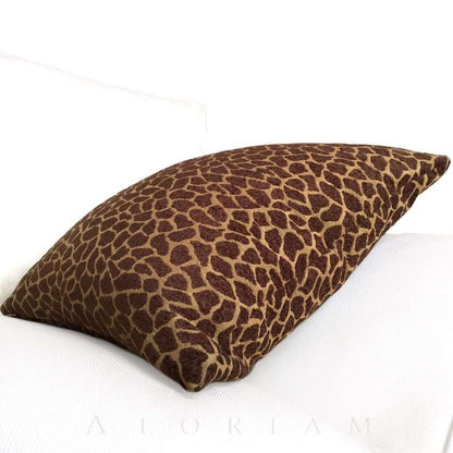 (CLEARANCE) Designer Giraffe Brown Tan Animal Pattern Chenille Pillow Cover