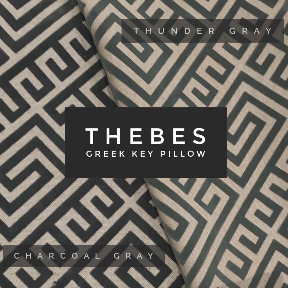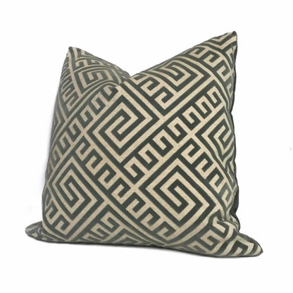 Thebes Thunder Gray & Beige Greek Key Velvet Pillow Cover (Fabric by the Yard available)