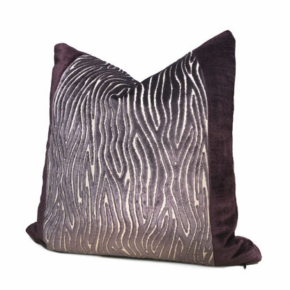 Clarke & Clarke Onda Smoky Brown Purple Cut Velvet Faux Bois Abstract Pillow Cover