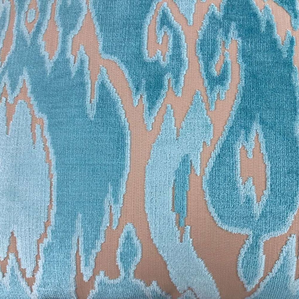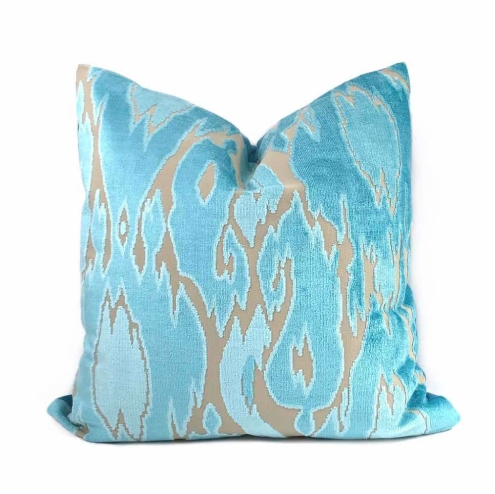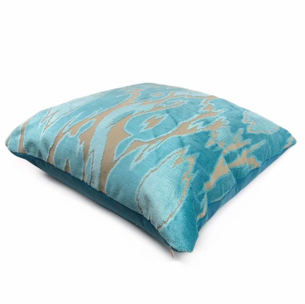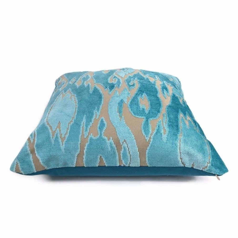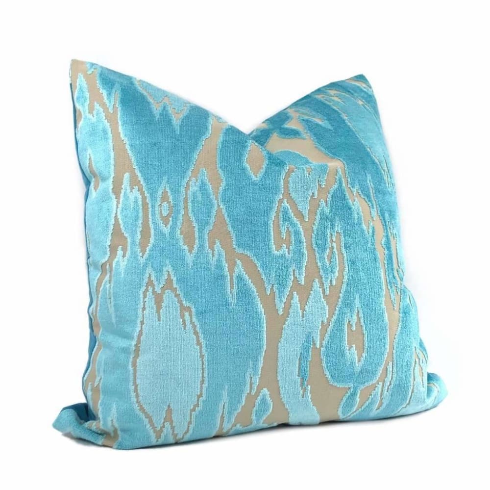 Xanadu Turquoise Blue Abstract Ikat Cut Velvet Pillow Cover