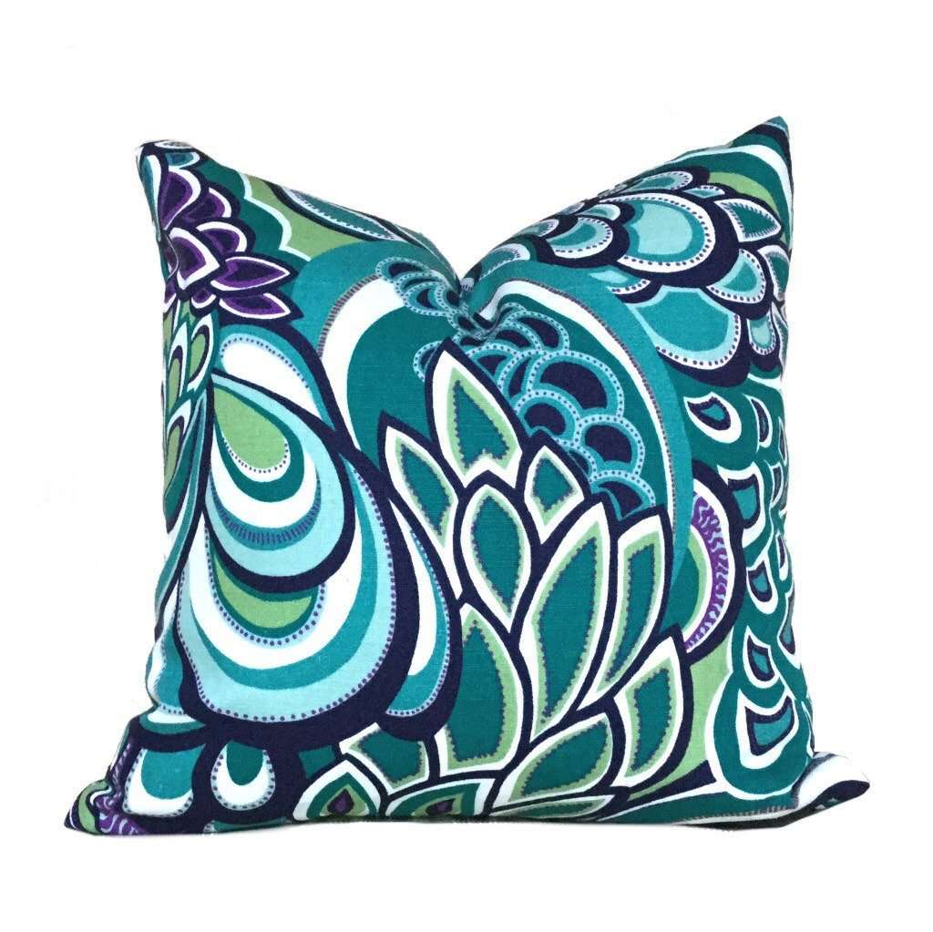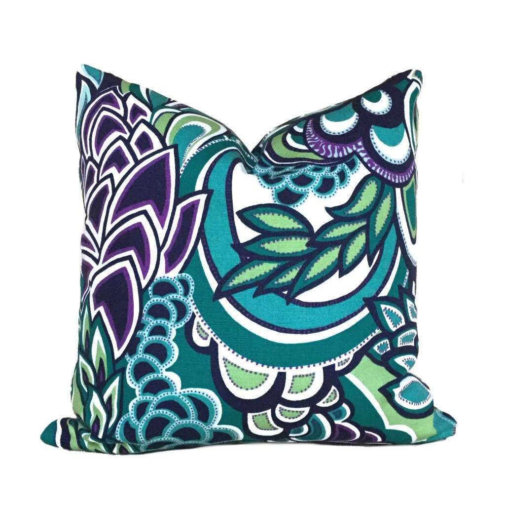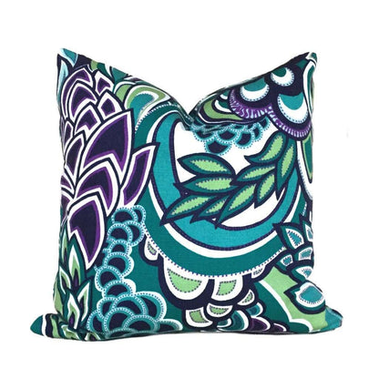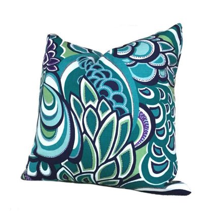 (CLEARANCE) Eileen Boyd Showgirl Retro Mod Teal Green Purple Floral Pillow Cover