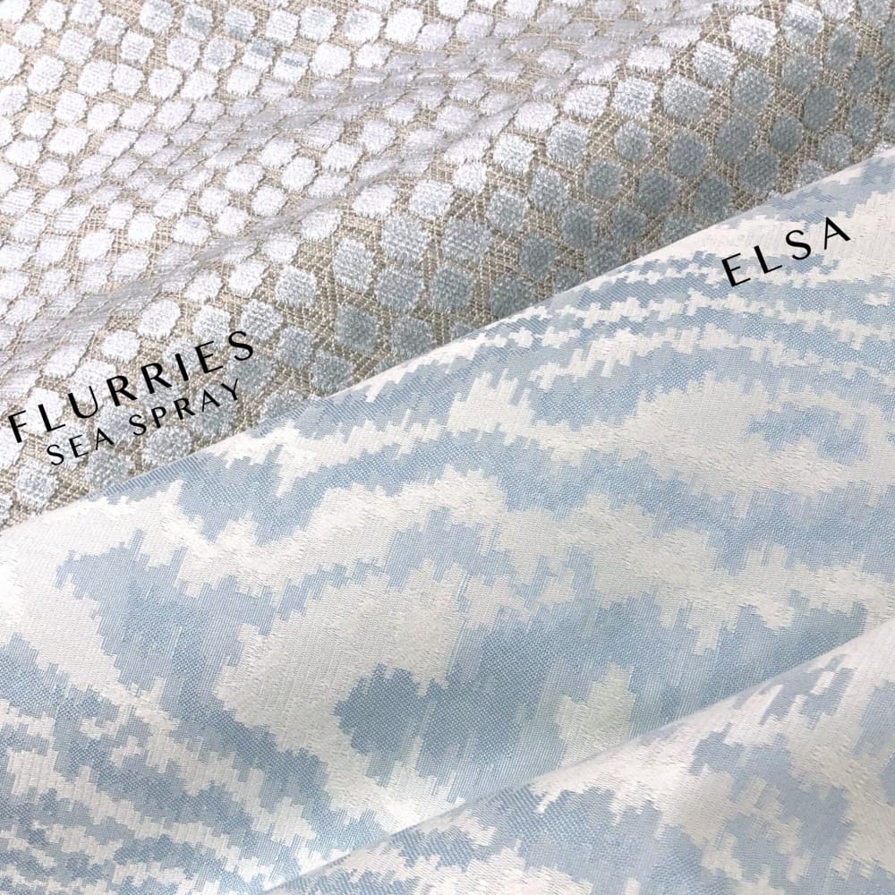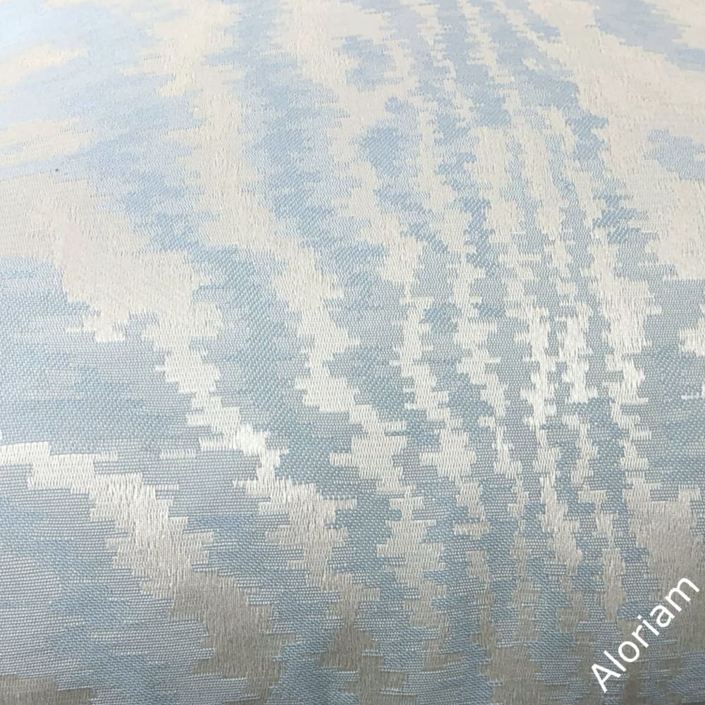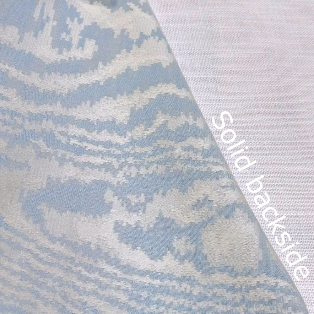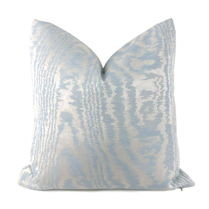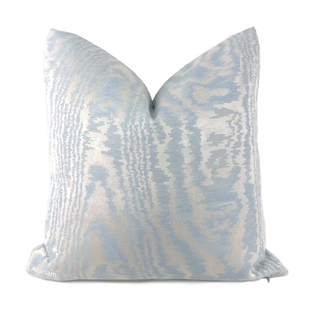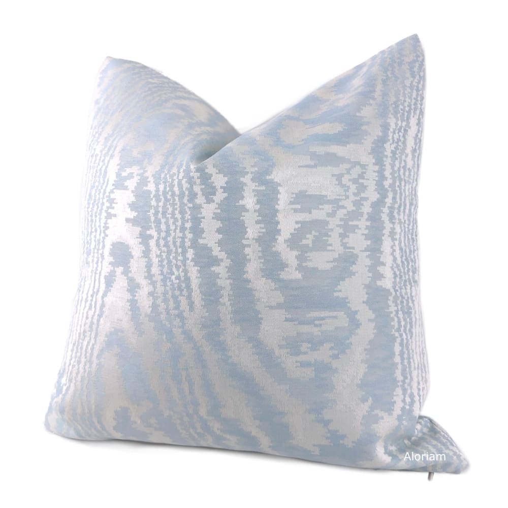 Elsa is a faux bois patterned pillow cover woven in pale ice blue and off-white.