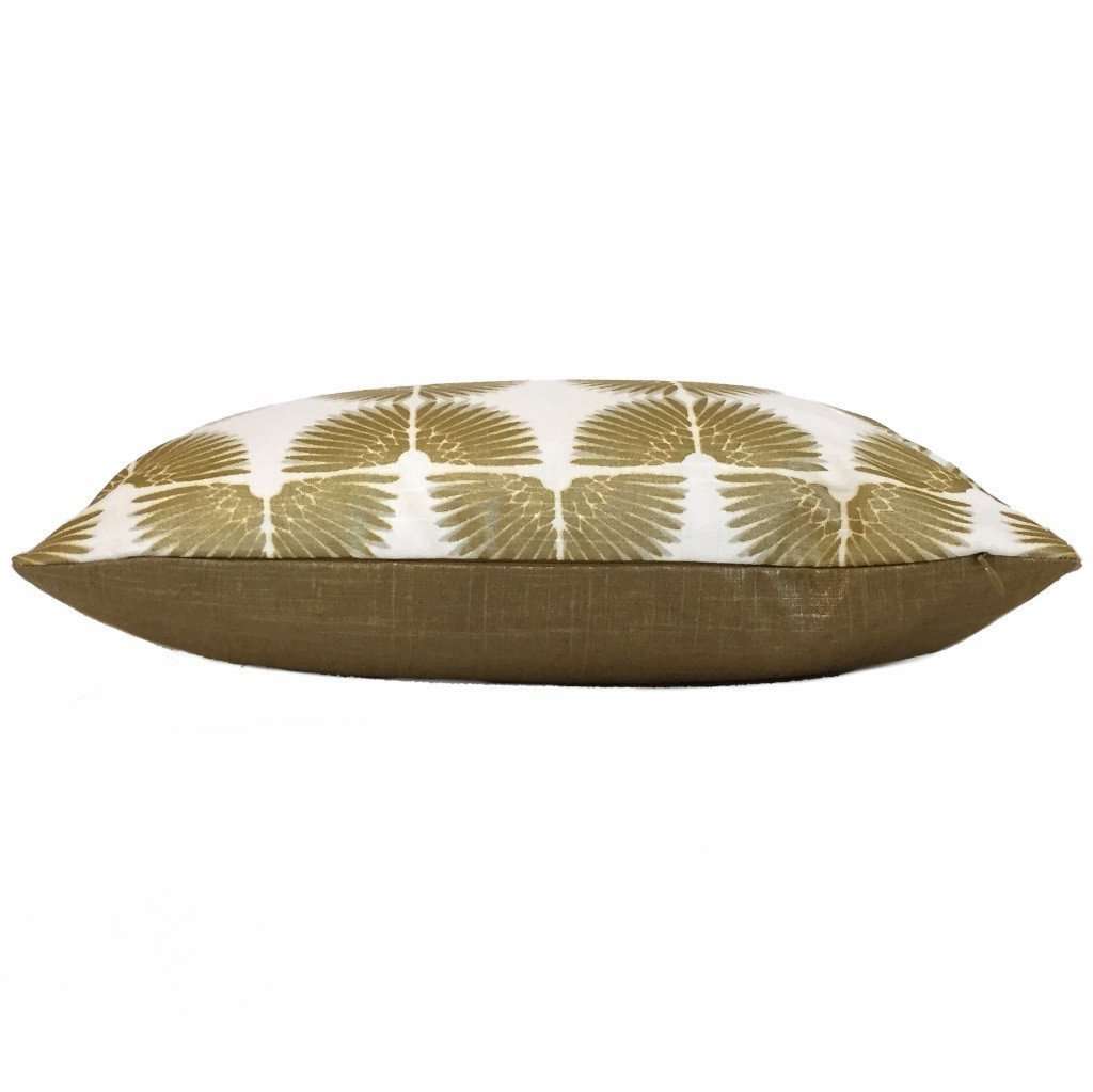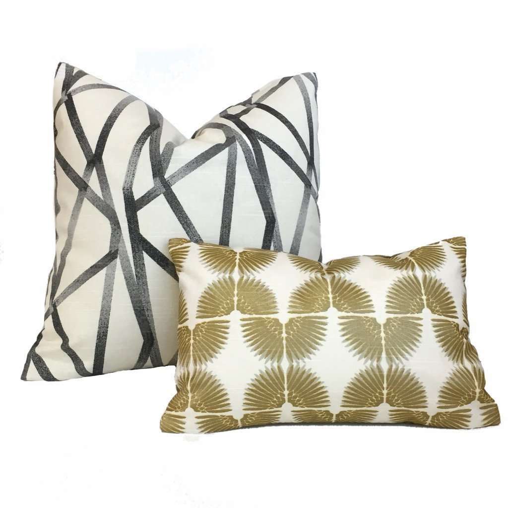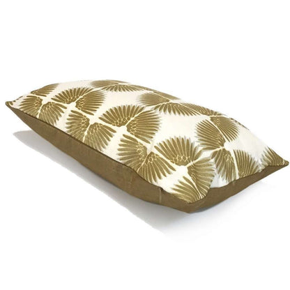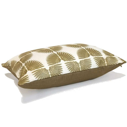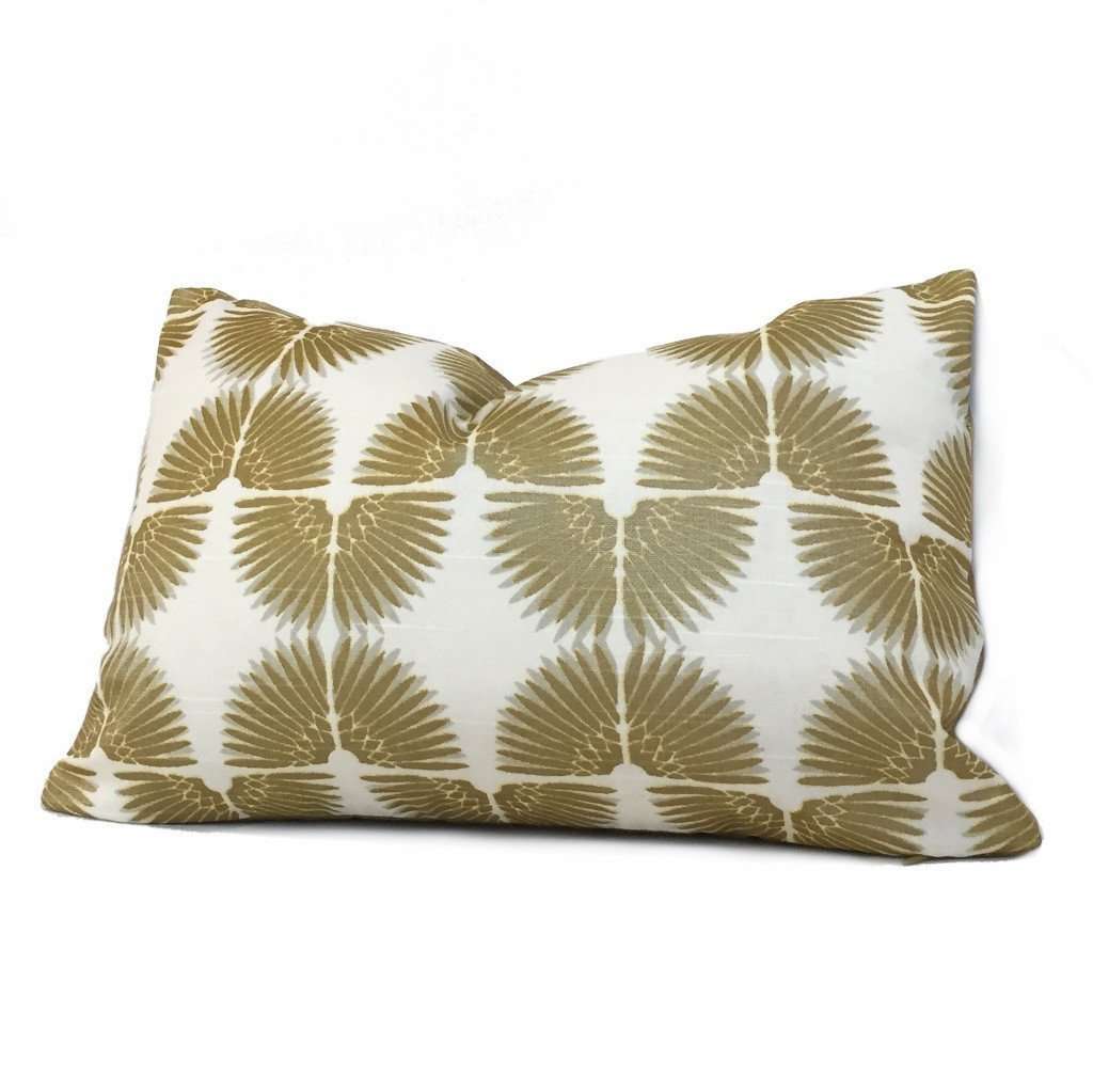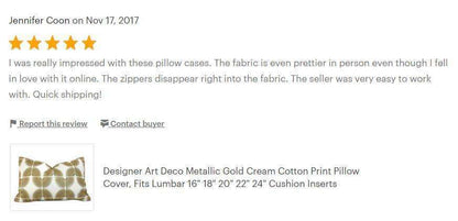 This Art Deco inspired pillow cover features an undulating fan pattern printed in metallic gold on creamy white background! Pattern fabric on your choice of one or both sides. Photographed on 12x18 insert. This design is available in additional colors.