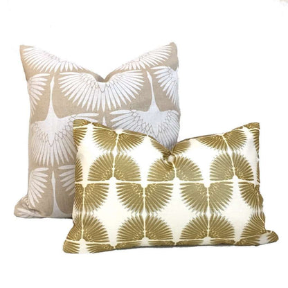 Erte Art Deco Fans Metallic Gold Cream Cotton Print Pillow Cover (Fabric by the Yard available)