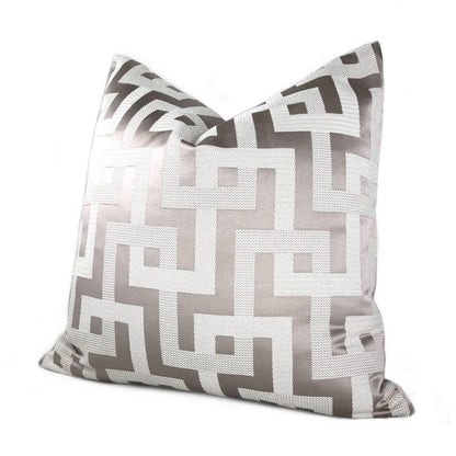 (CLEARANCE) Argos Silver Gray Greek Key Maze Fretwork Geometric Pillow Cover