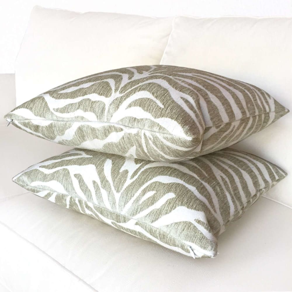 (CLEARANCE) Ethan Allen Flax Beige Tiger Stripe Pillow Cover (Fabric by the Yard available)